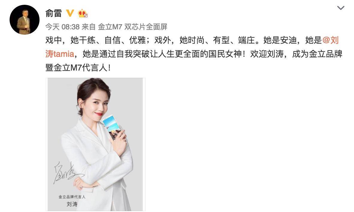 劉濤代言金立M7,首款全面屏旗艦三色來襲