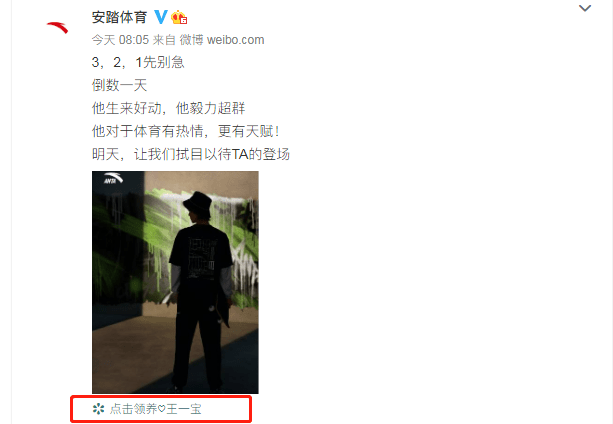 從安踏品牌方公布的代言人剪影,以及“點擊加入守護王一博”(明星經(jīng)紀(jì)公司)的標(biāo)簽上來看,最新代言人應(yīng)該是王一博沒錯了。
