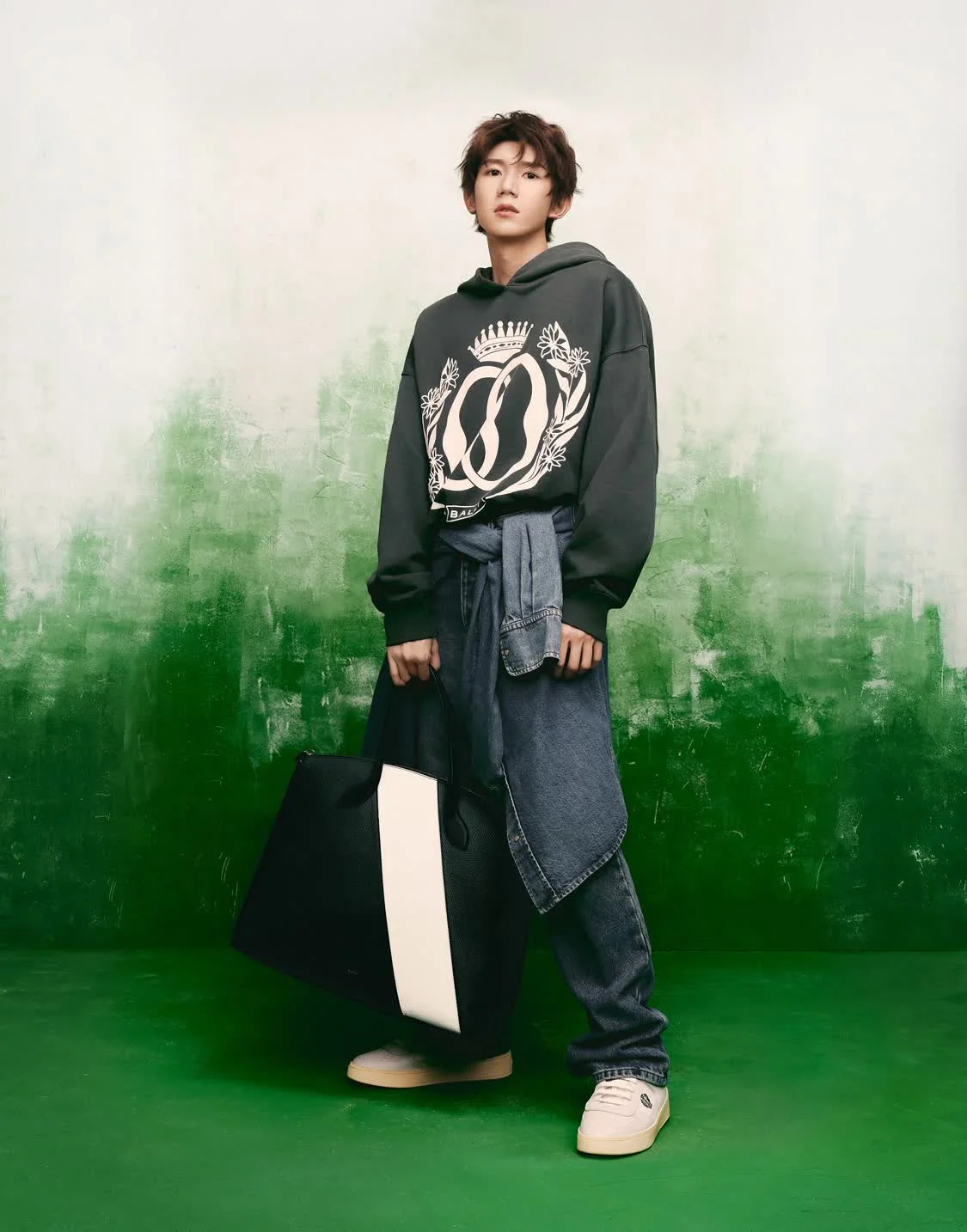Bally全球品牌代言人王源身著Bally 2023秋冬男士連帽運動衫配以Raise印花運動鞋,均飾有Bally煥新演繹的馬銜扣徽章標識印花設計,搭配Bally秋冬男士Lago經典條紋托特包。