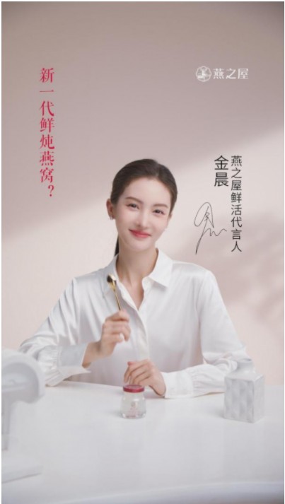 10月25日,燕之屋正式宣布青年演員、舞者金晨成為燕之屋鮮活代言人。當日,燕之屋在微博等平臺發(fā)布品牌TVC,掀起一波社交熱議,其中#好喜歡這樣鮮活的金晨#、#燕之屋鮮活代言人金晨#、#燕之屋新一代鮮燉燕窩#相關話題亦登上微博熱搜。