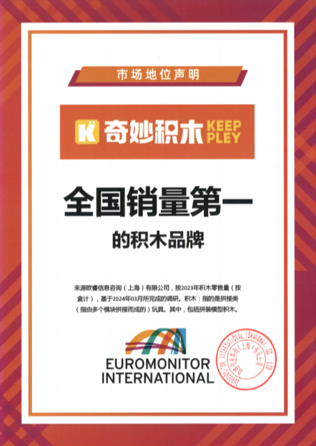 自1994年注冊“啟蒙”品牌做原創(chuàng)積木起,啟夢玩具始終堅持打造高品質(zhì)積木產(chǎn)品。一路穩(wěn)扎穩(wěn)打的啟夢玩具,產(chǎn)品暢銷40余個國家和地區(qū),無疑已是積木行業(yè)的領(lǐng)軍企業(yè)。今年3月,奇妙積木KEEPPLEY還被國際權(quán)威第三方市場研究機(jī)構(gòu)Euromonitor認(rèn)證為“全國銷量首位的積木品牌”(注1)。