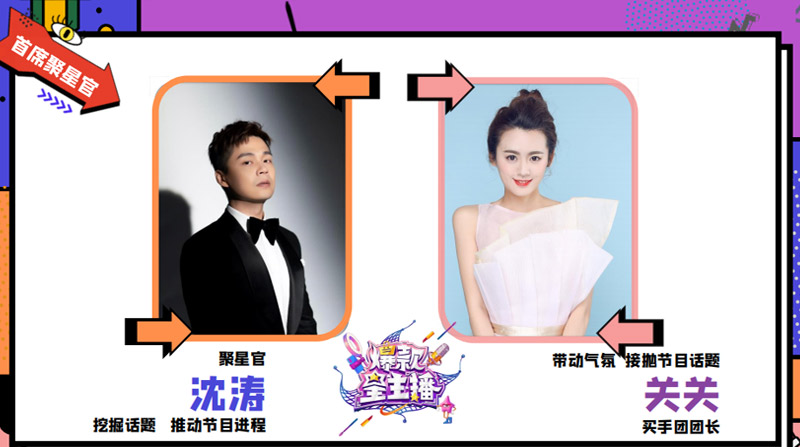 《爆款星主播》是由由場景互娛、藍象傳媒、定象互動聯(lián)合出品的職場真人秀網(wǎng)絡綜藝節(jié)目。由沈濤擔任“首席聚星官”,關(guān)關(guān)擔任“聚星助力官”,薇婭、葉一茜、胡可等嘉賓組成明星評審團。