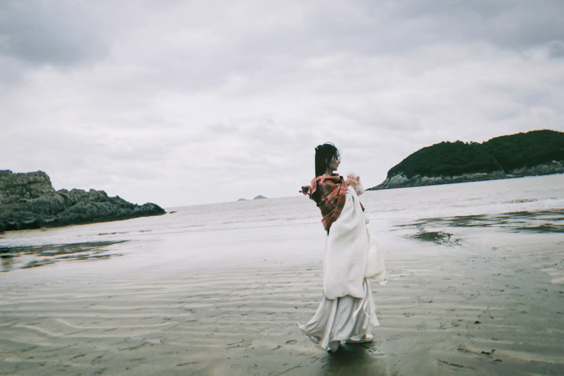 紅色格紋披肩好溫柔。