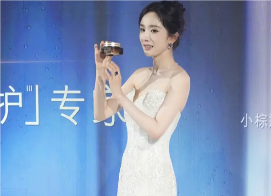 楊冪(明星經(jīng)紀(jì)公司)出席雅詩蘭黛小棕瓶家族新品發(fā)布會,白色抹胸裙?fàn)顟B(tài)極佳。