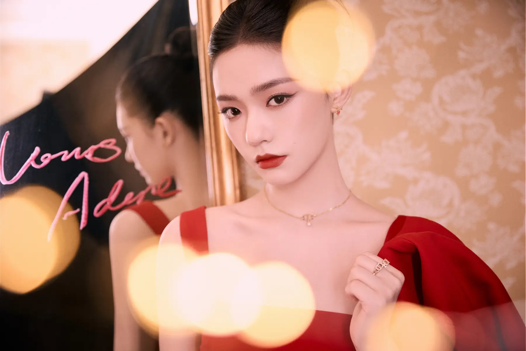 林允一抹紅唇性感撩人 目光含情如花綻放