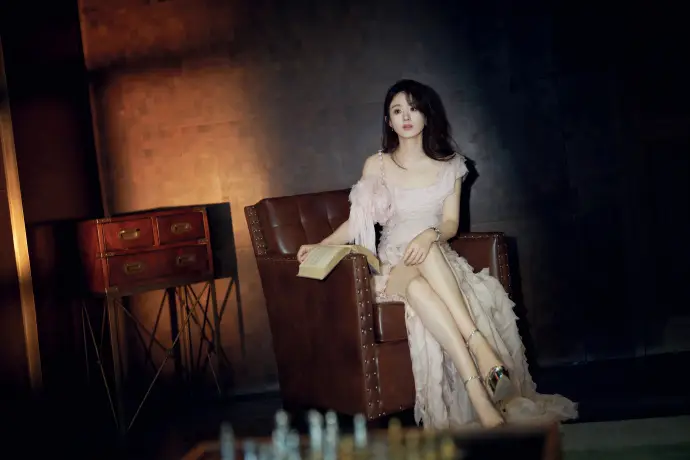 趙麗穎穿粉裙秀白皙美腿 微露香肩純欲動人