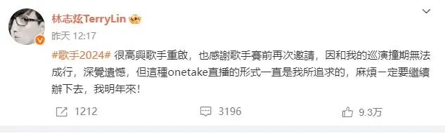 鄧紫棋林志炫回應《歌手》搖人 稱演唱會行程有沖突