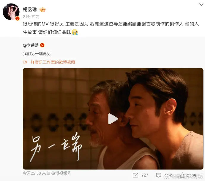 5月13日,楊丞琳發(fā)文為老公李榮浩宣傳新歌,她寫道:“很恐怖的MV 很好哭 主要是因為 我知道這位導演兼編劇兼整首歌制作的創(chuàng)作人 他的人生故事...