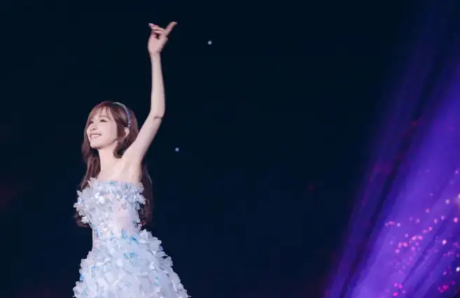 4月17日,王心凌天津演唱會(huì),穿藍(lán)色抹胸禮裙,燈光打在禮裙上,波光粼粼如夢(mèng)如幻,她一頭栗色長(zhǎng)發(fā)微卷側(cè)分在一旁,恬靜溫潤(rùn)如若仙女下凡。