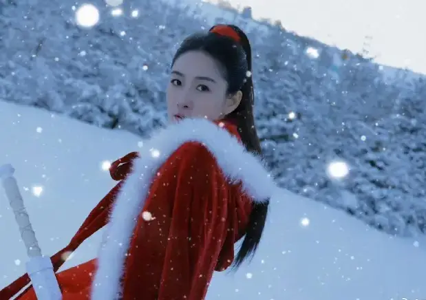 陶昕然雪地黑發(fā)紅衣古裝照 手持佩劍女俠氣質滿滿