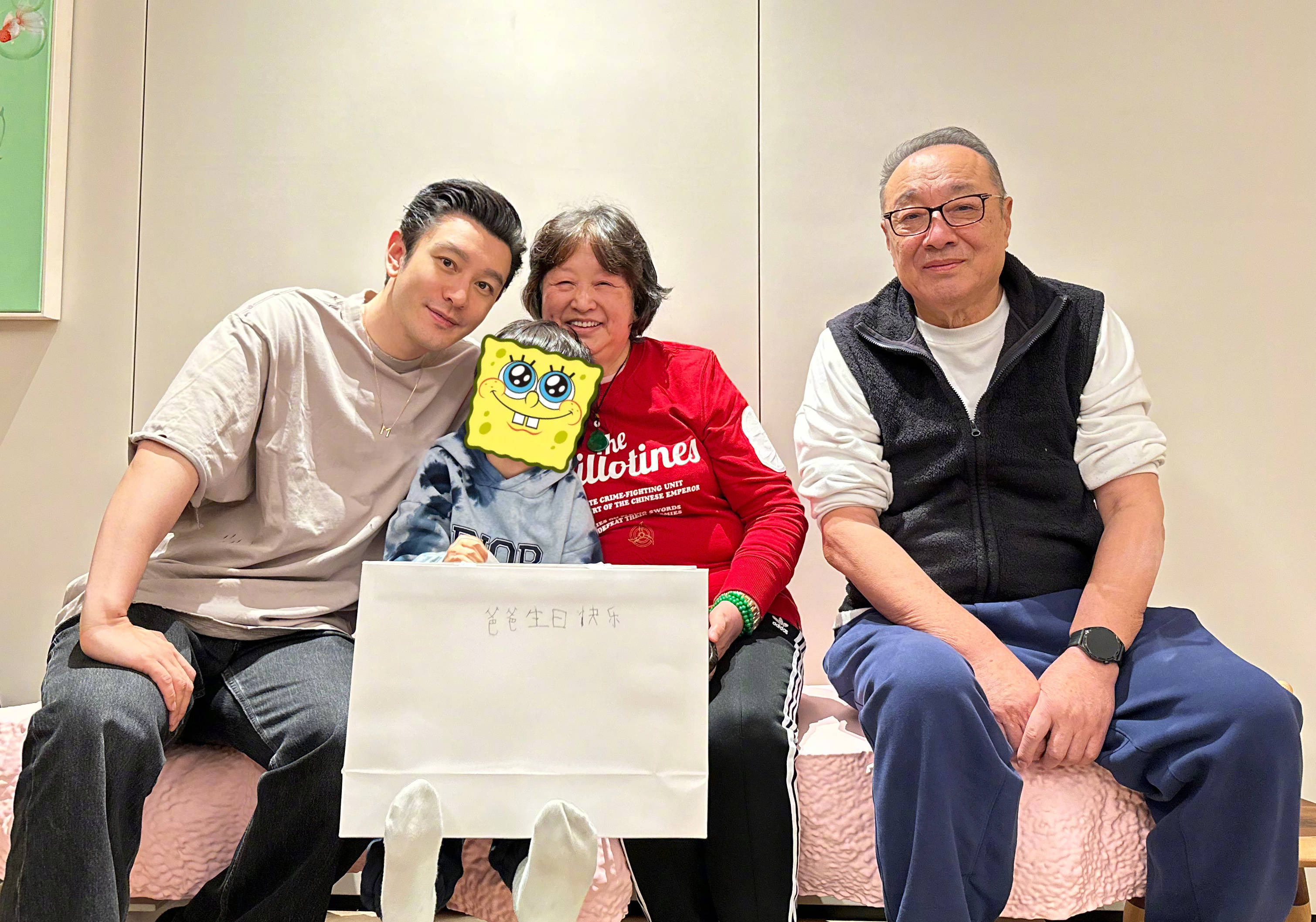11月13日, 黃曉明曬全家人一起過(guò)生日的合照并配文:“回家過(guò)生日啦”,照片里黃曉明與父母一起合照,兒子小海綿手寫(xiě)生日祝福,十分可愛(ài)。