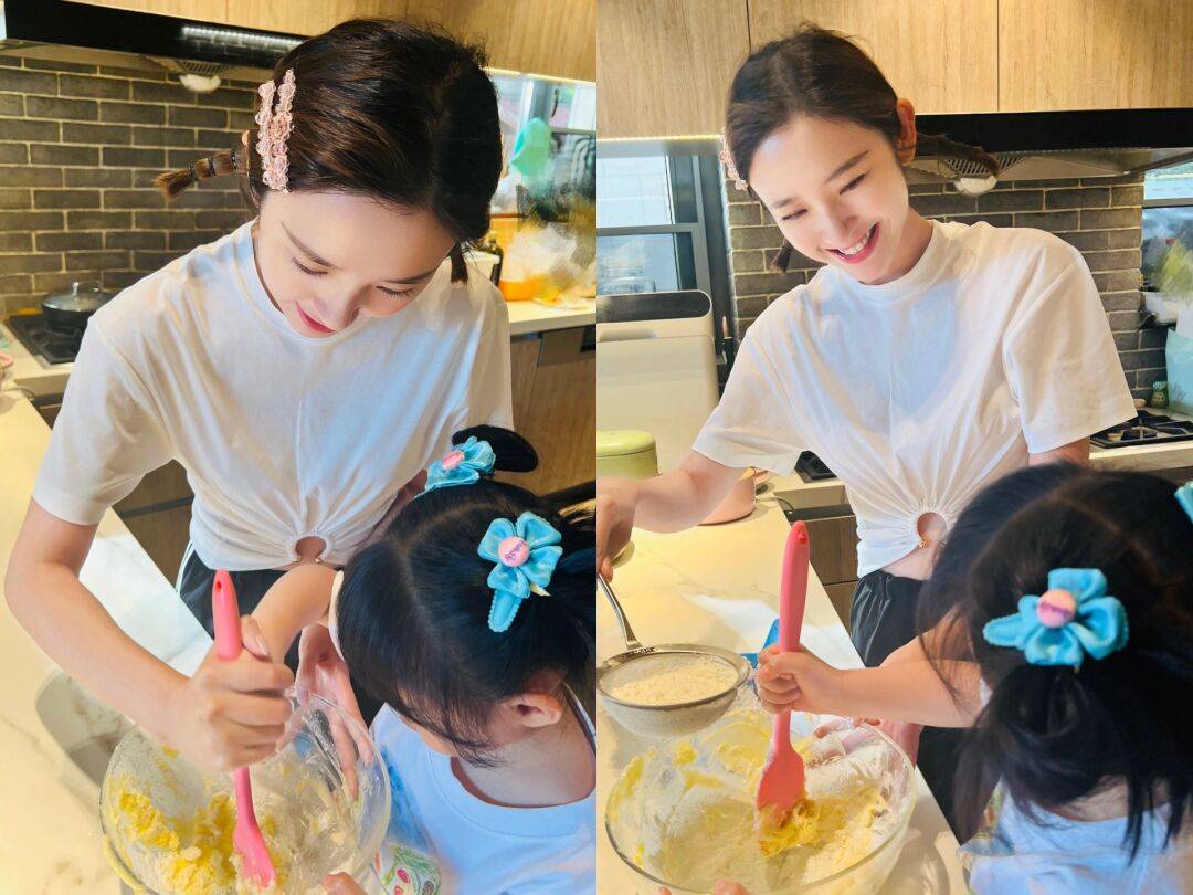 唐藝昕分享假期生活 與3歲女兒居家做黃油小餅干