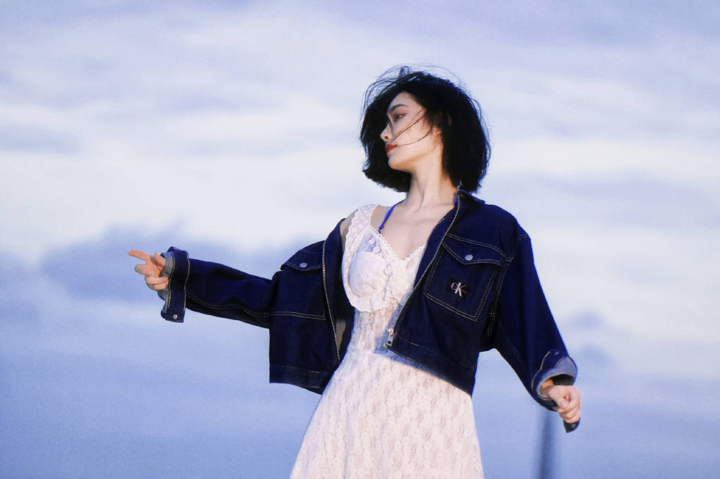 許佳琪海邊漫步感受夏末微風 白裙搭牛仔衣有個性