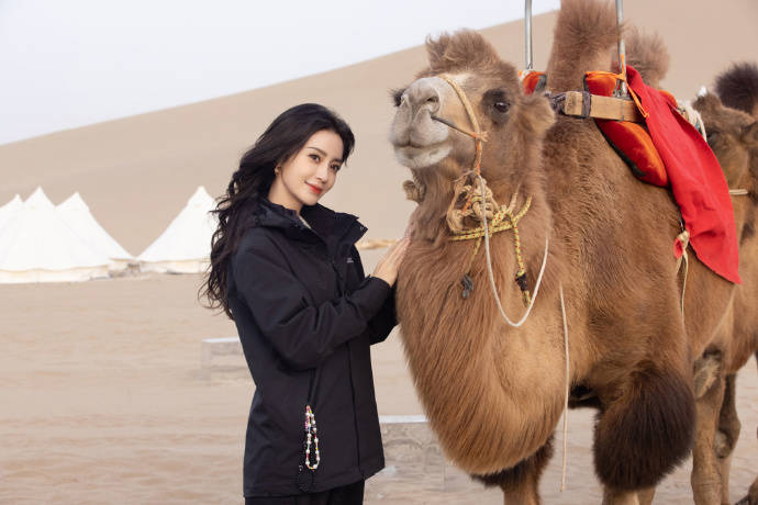 Angelababy現(xiàn)身沙漠參加活動(dòng) 與駱駝貼貼笑容甜美