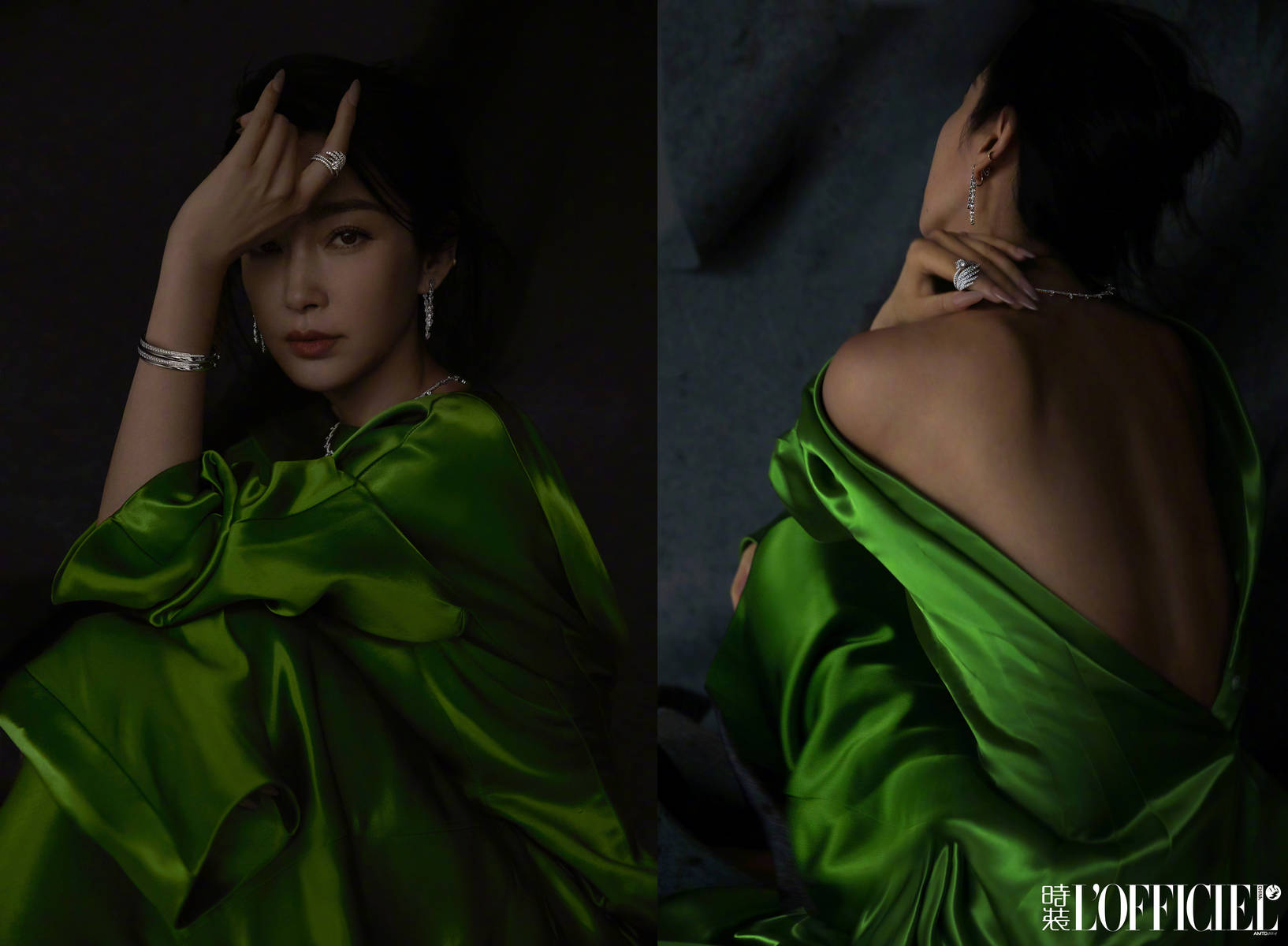9月27日,李冰冰寫真釋出,綠色絲緞長裙,面紗掩面拂動(dòng),多種風(fēng)格駕輕就熟,嫵媚似青蛇。