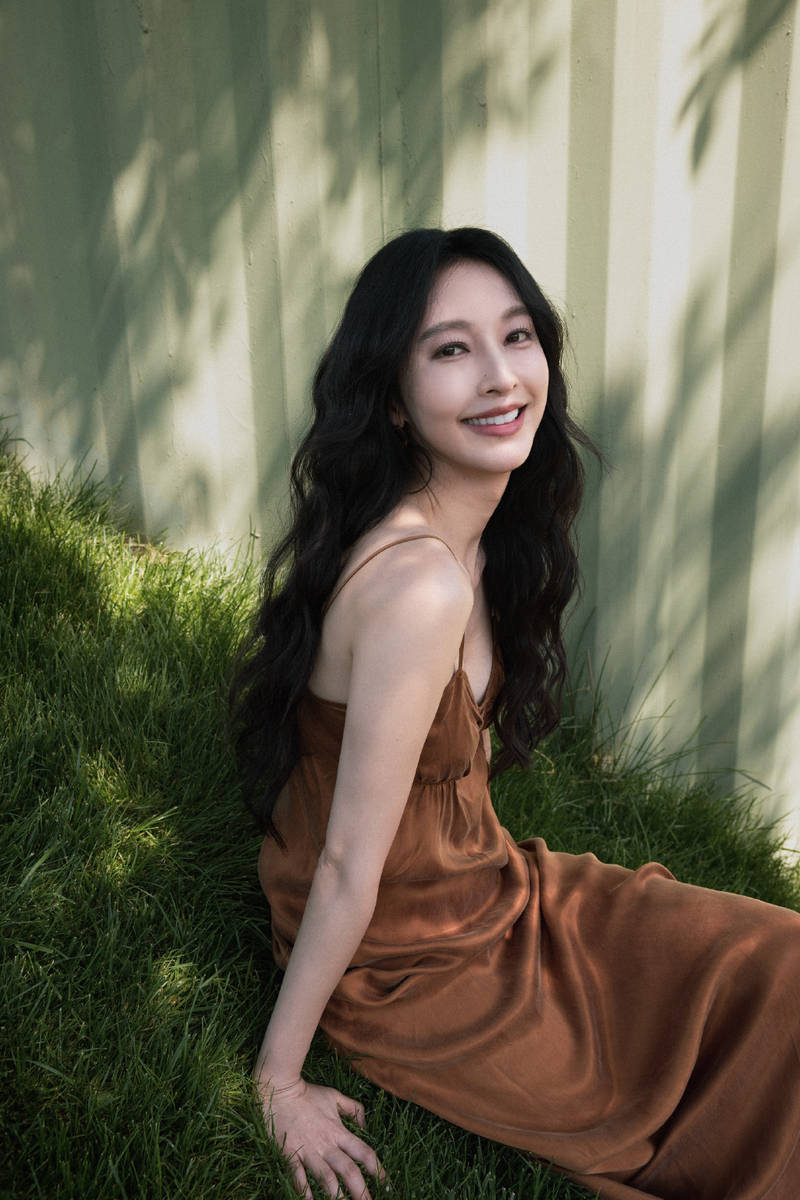 張儷在草原上玩轉(zhuǎn)歪頭擺拍。
