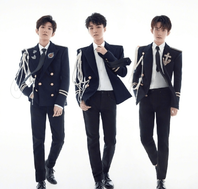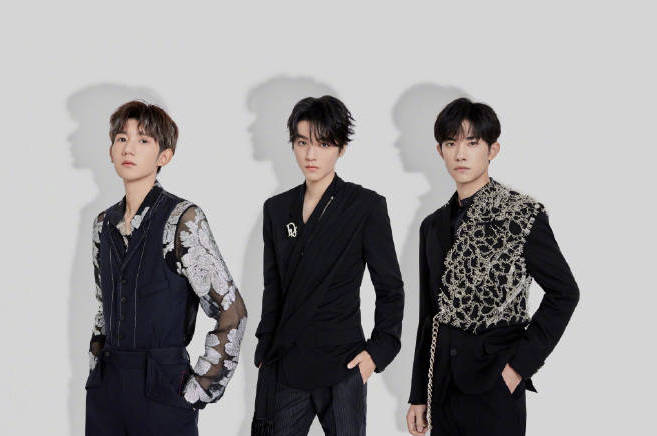 TFBOYS合照,三人黑色穿搭帥氣十足。
