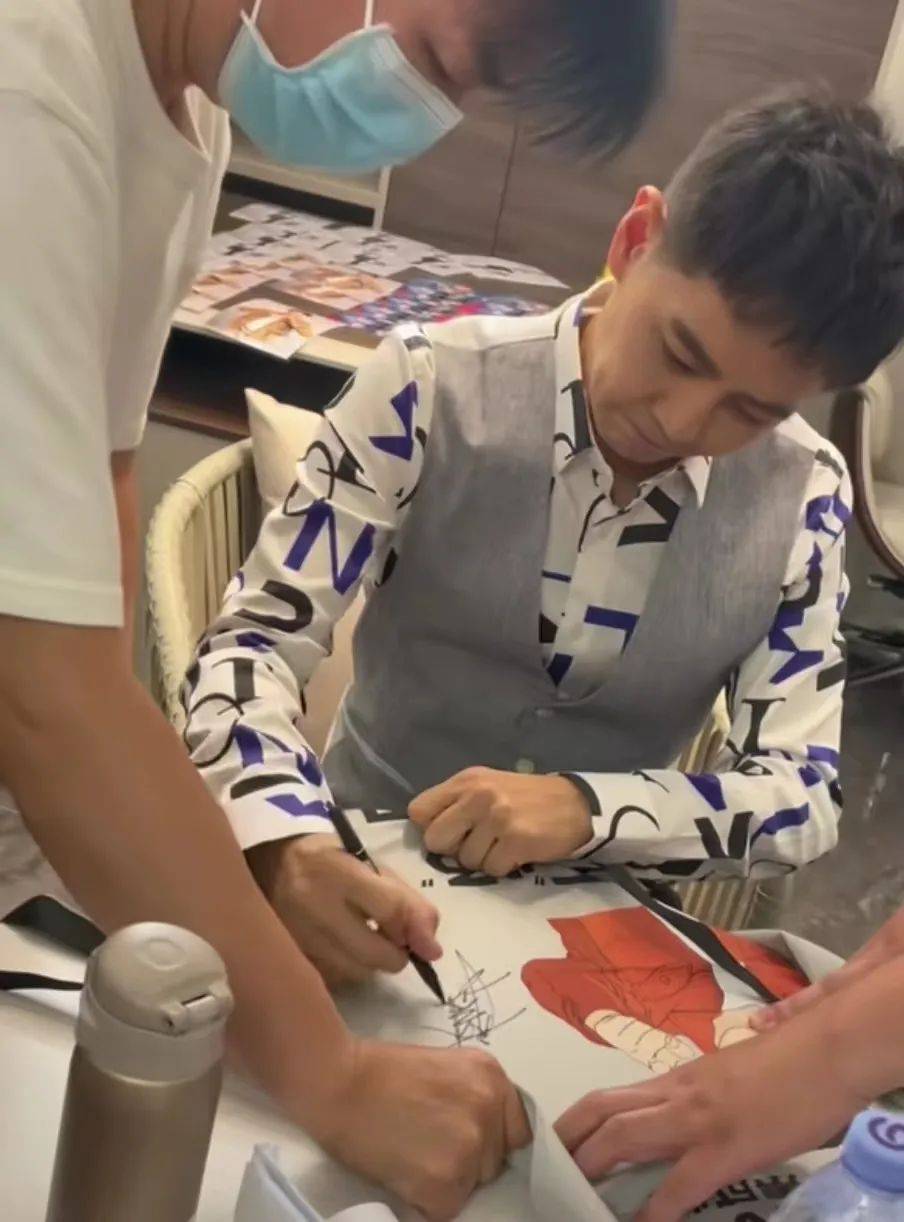 當他給粉絲簽名的時候,左手全程弓起使不上力,只能用右手發(fā)力,看著有些費勁。