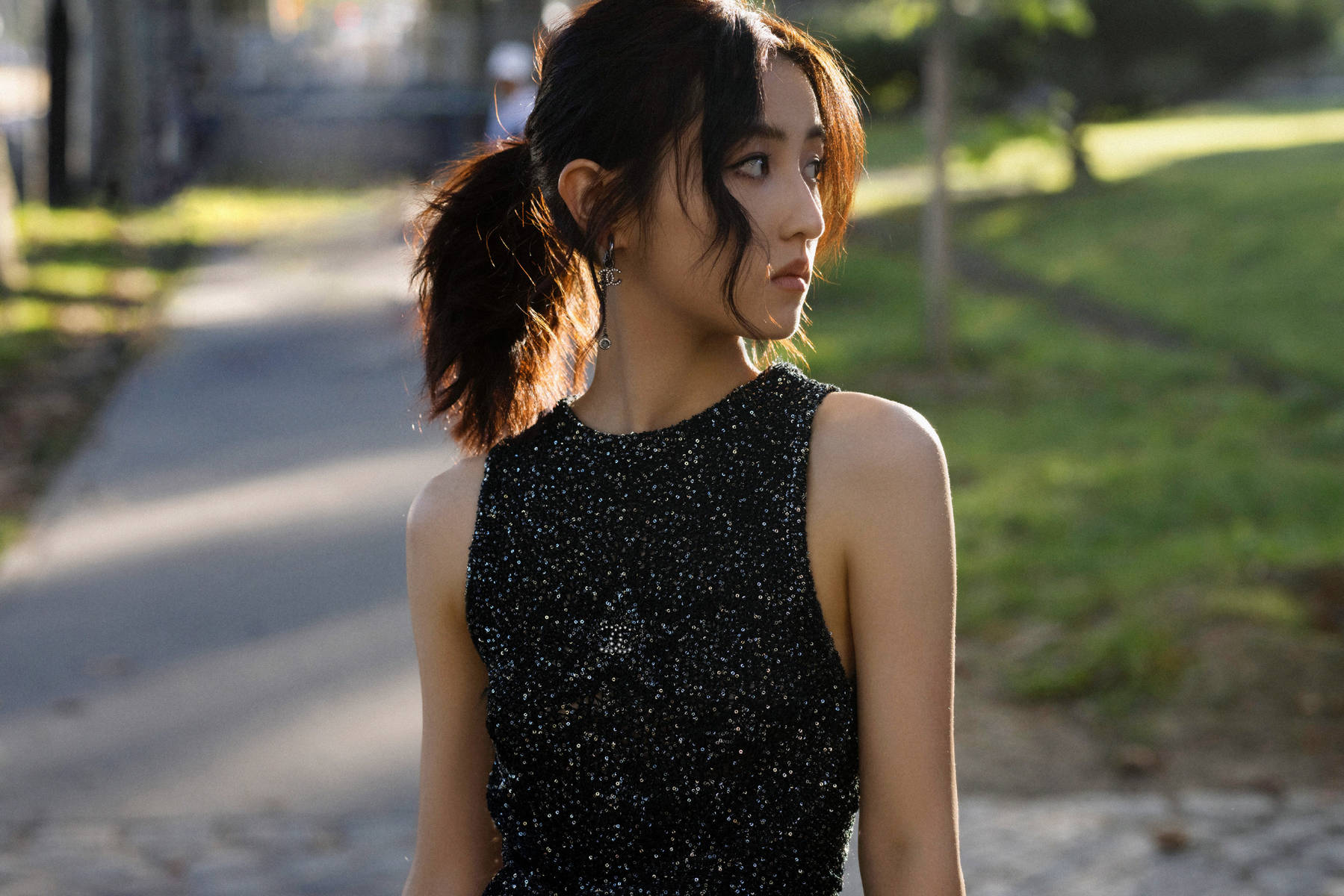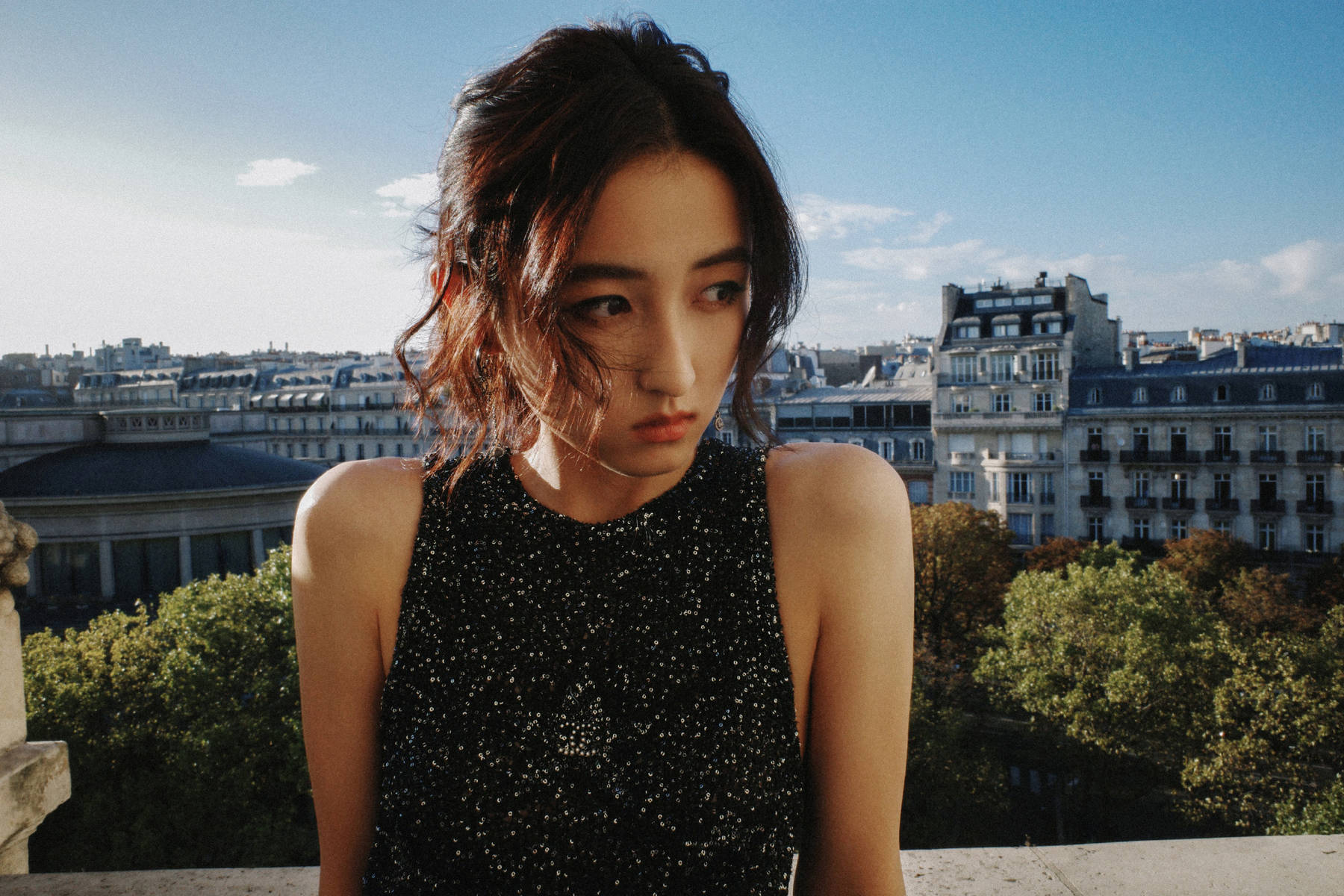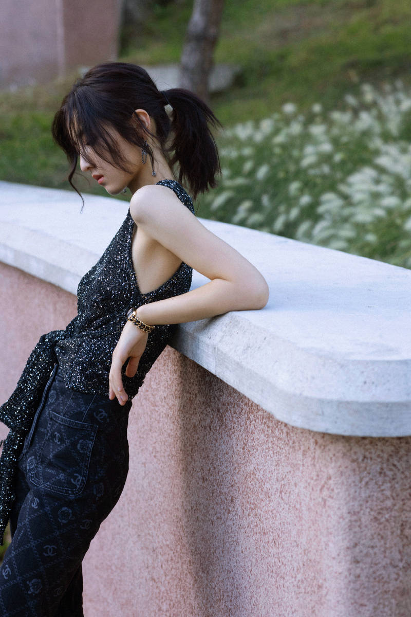 張子楓穿亮片背心青春靚麗 陽臺上玩轉(zhuǎn)法式慵懶風(fēng)