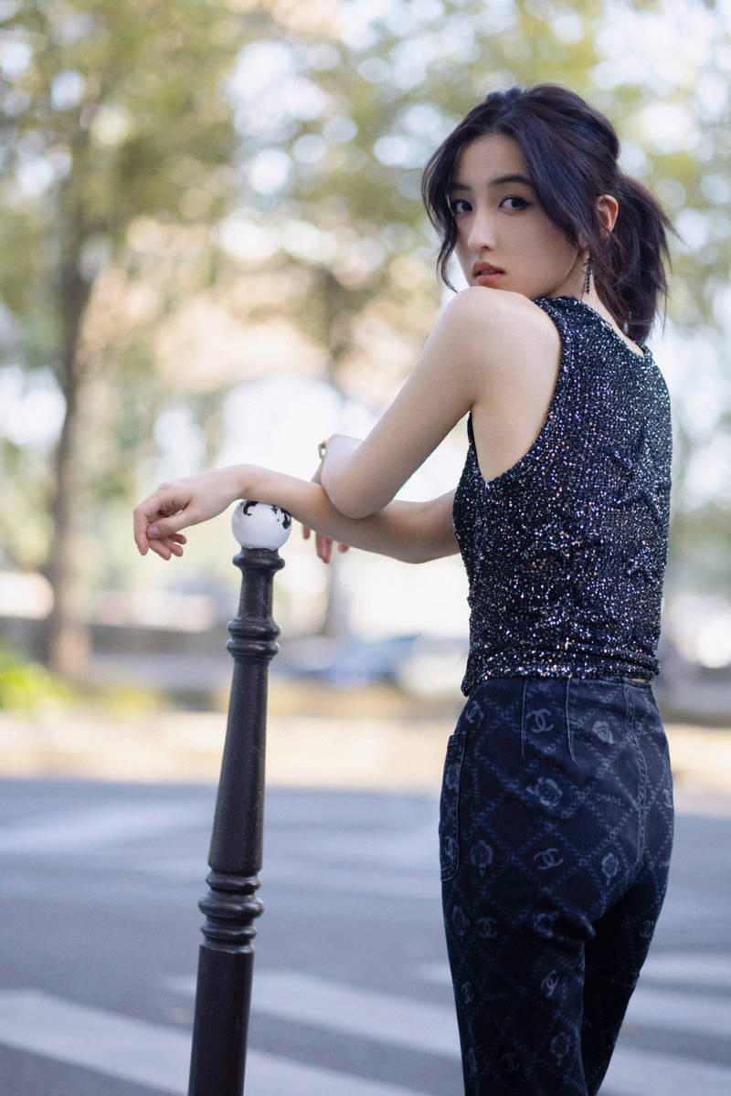 10月3日,張子楓(經(jīng)紀公司)工作室曬出了一組張子楓身穿亮片背心的寫真照。