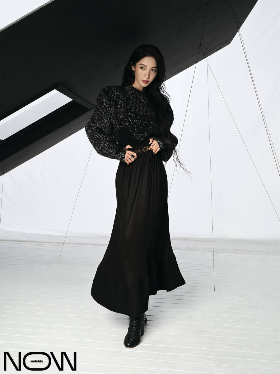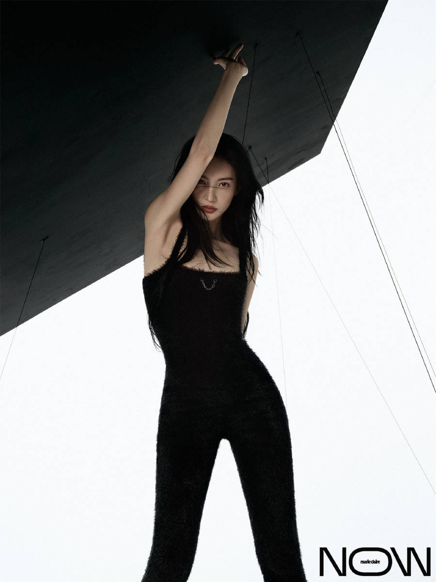 金晨眼神凌厲,長(zhǎng)腿比例超絕。