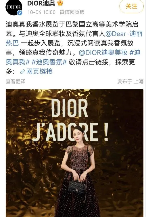 近日!DIOR迪奧官方官宣迪麗熱巴(明星經(jīng)紀(jì)公司)升任DIOR迪奧全球彩妝及香氛代言人。