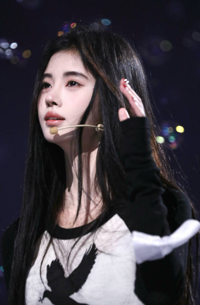 鞠婧祎黑發(fā)及腰清純大方 皮膚白皙狀態(tài)如少女