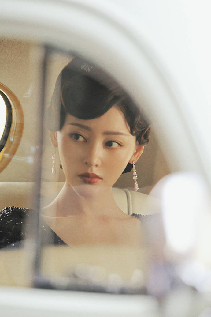 張?zhí)鞇蹠衩駠A麗風(fēng)片場(chǎng)照 雨中撐傘復(fù)古感十足