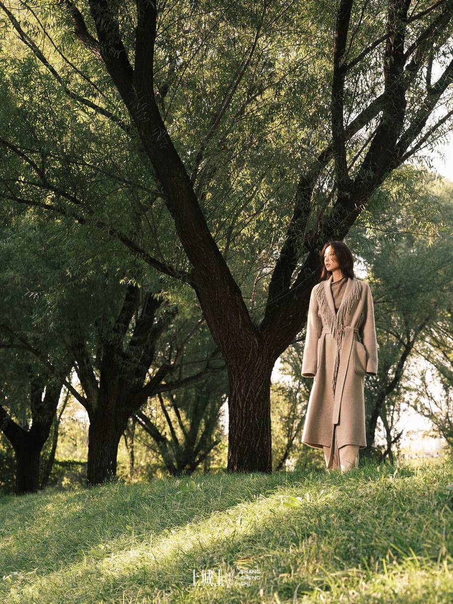 王珞丹燕麥色穿搭似秋風(fēng)拂面。