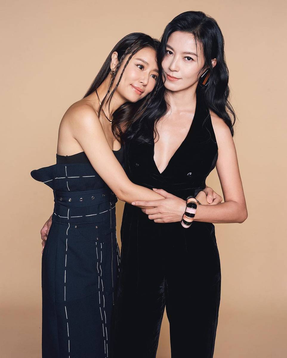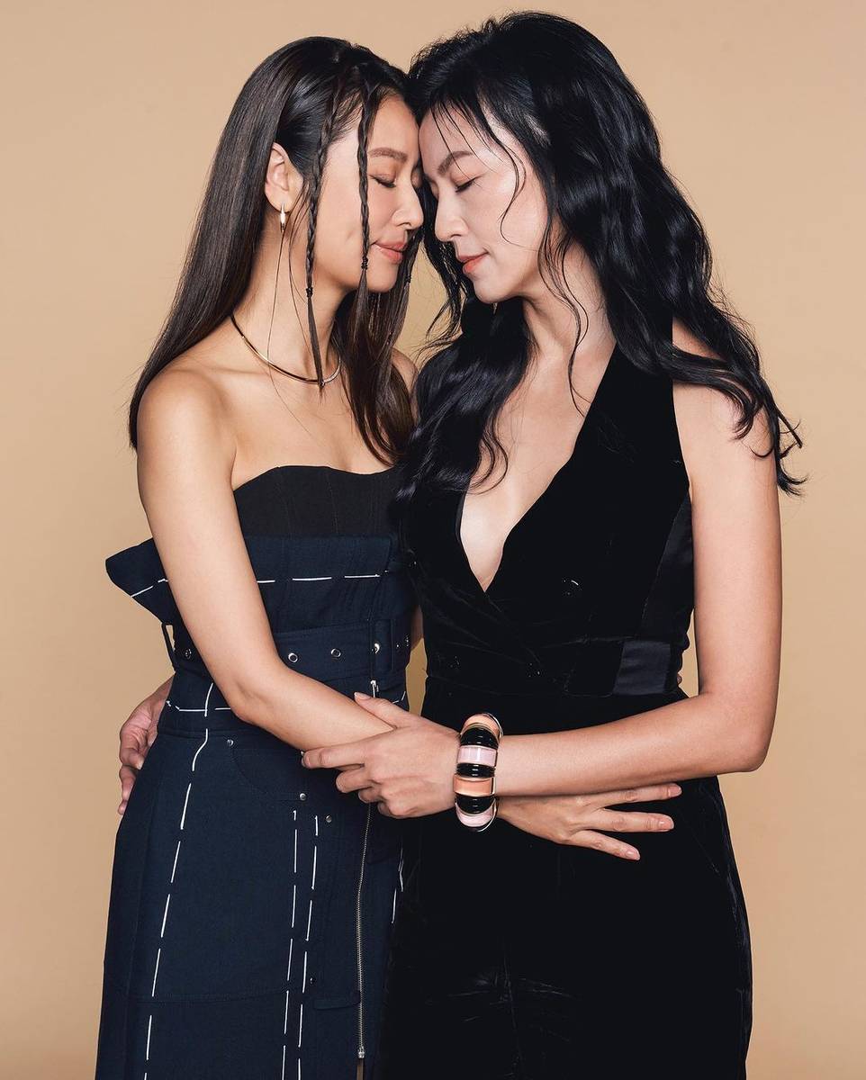 林心如和林熙蕾擁抱合照,林熙蕾著深V套裝性感迷人。