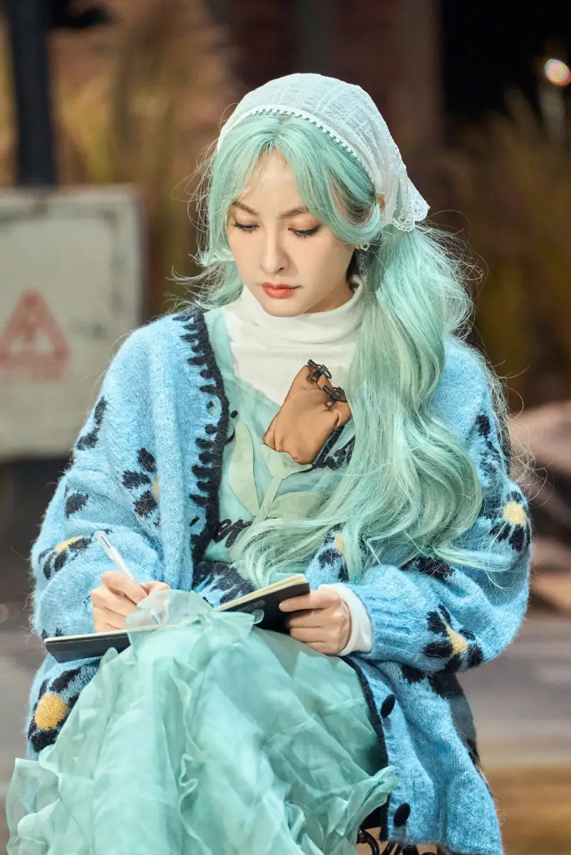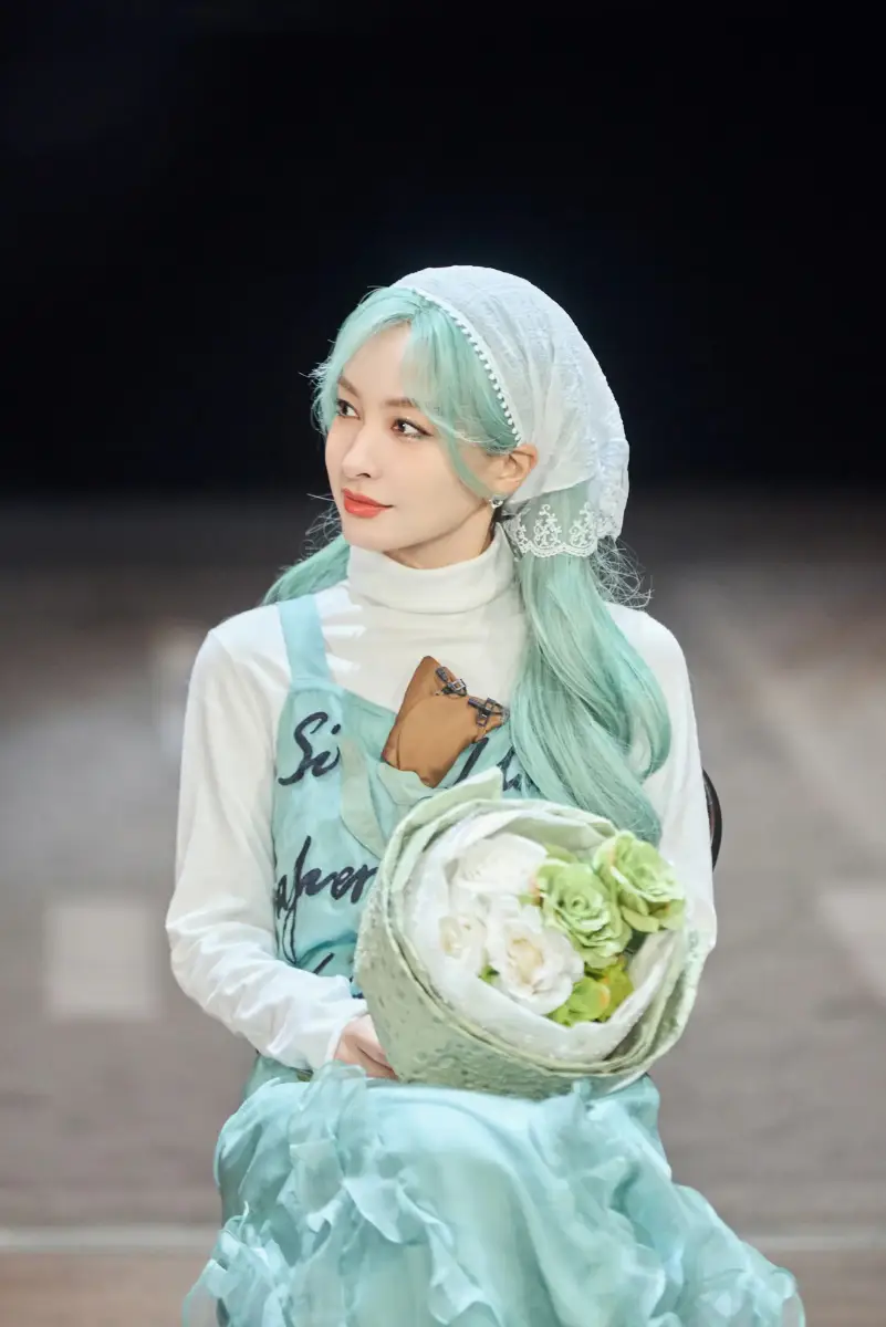 吳昕綠發(fā)精靈造型好美!手捧鮮花戴蕾絲頭巾超迷人