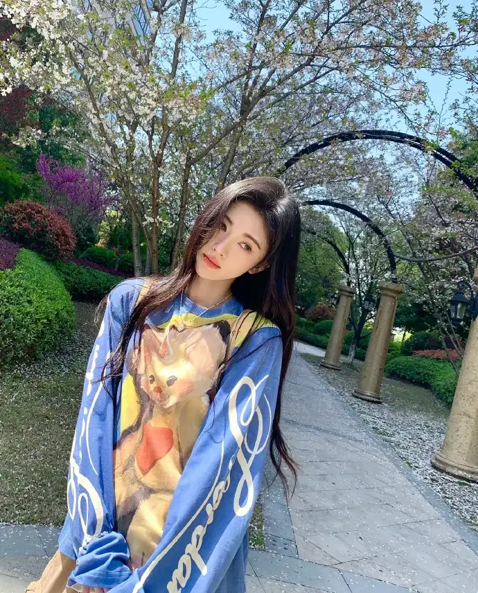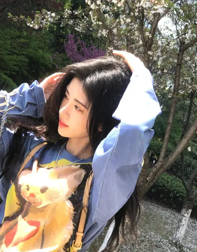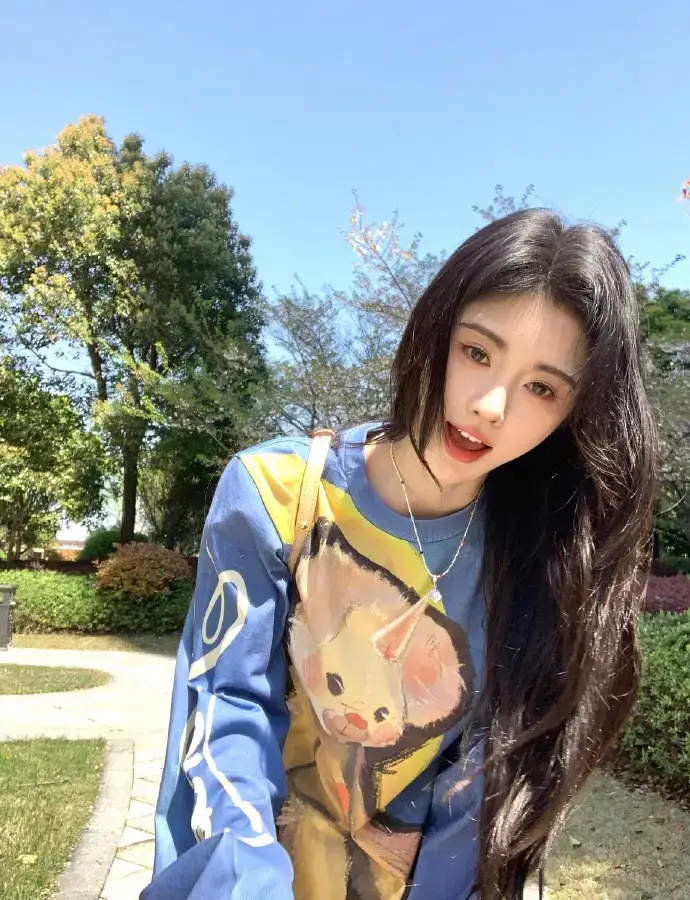 3月29日,鞠婧祎(明星經(jīng)紀(jì)公司)曬照片,穿卡通圖案藍(lán)色衛(wèi)衣,搭配牛仔背包,春意濃濃,元?dú)馐恪?/p>