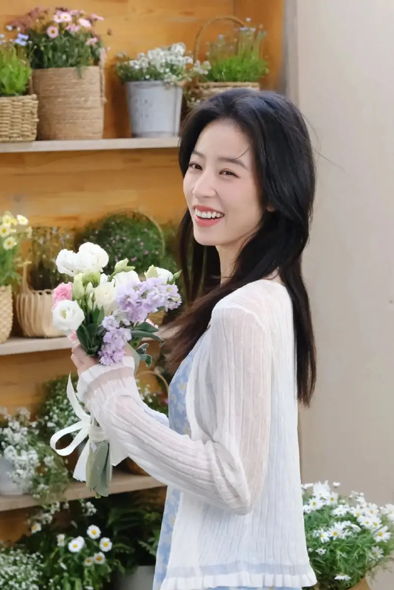 4月24日,周雨彤一組居家美照釋出。穿藍色裙子搭配白色針織衫的周雨彤頗有一種小家碧玉之感。