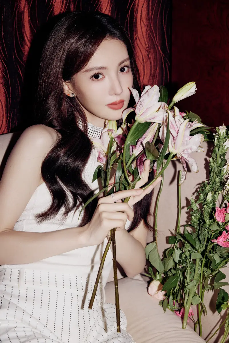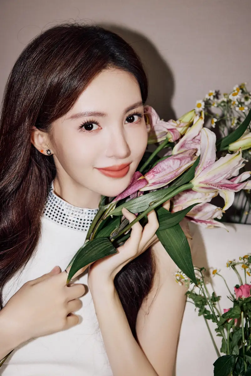 金晨細(xì)細(xì)品花,高潔無(wú)暇。