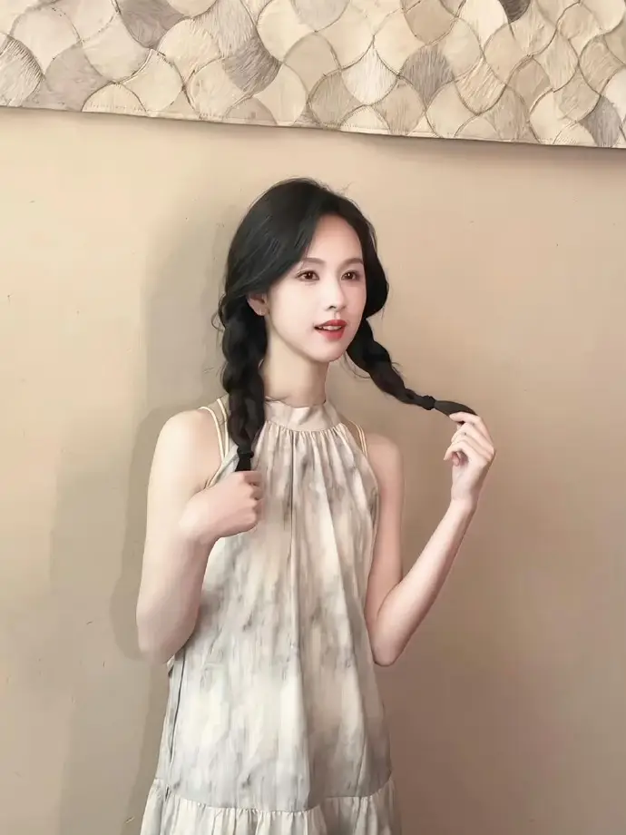 陳都靈身穿暖色裙子,兩個(gè)麻花辮襯出她的靈動(dòng)。