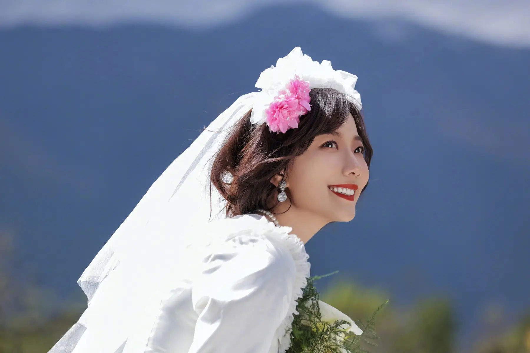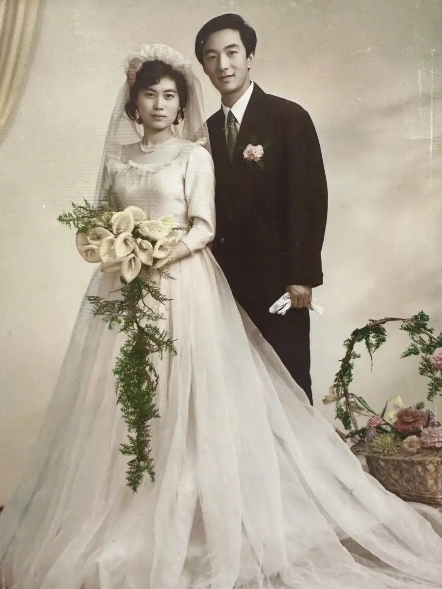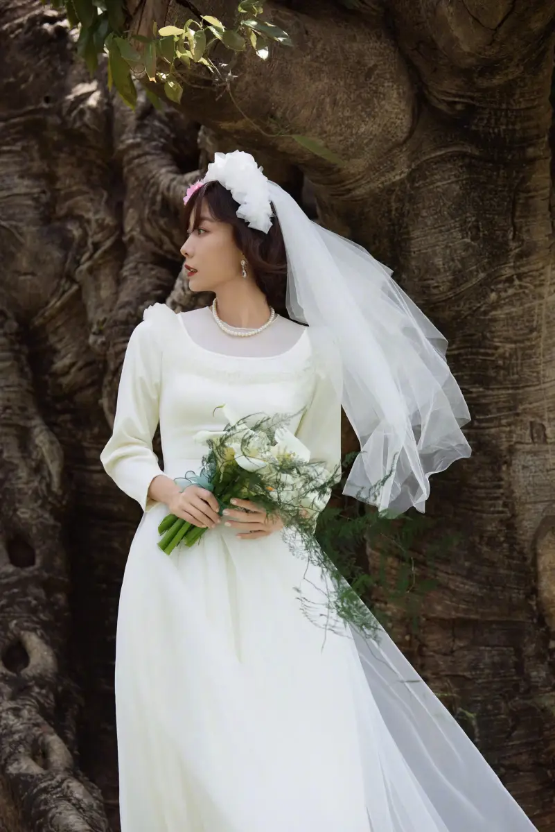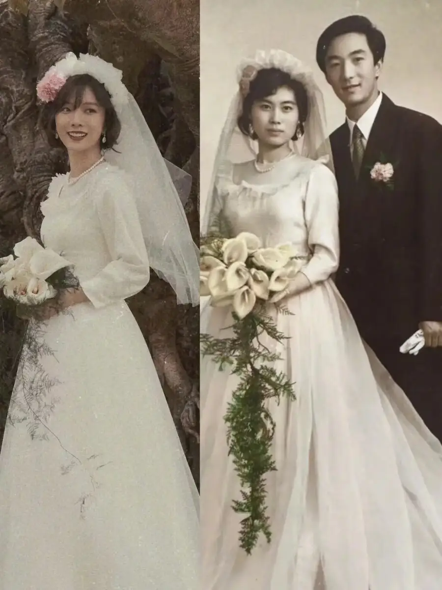 王珞丹的媽媽復(fù)古式婚紗顏值高。