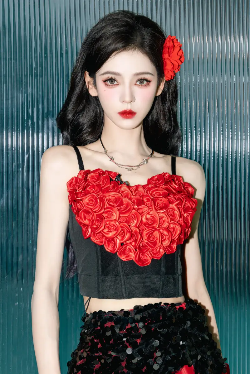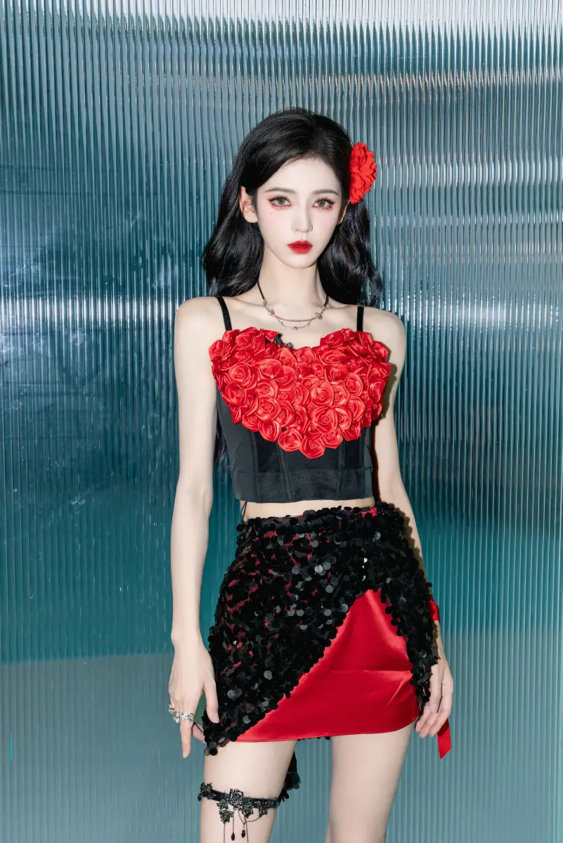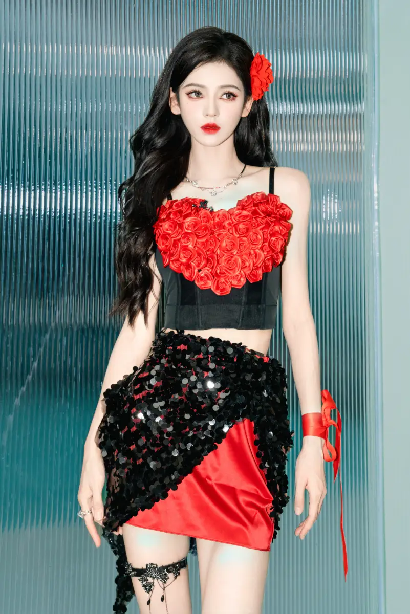 張予曦仿佛盛開的紅玫瑰。美暈了!