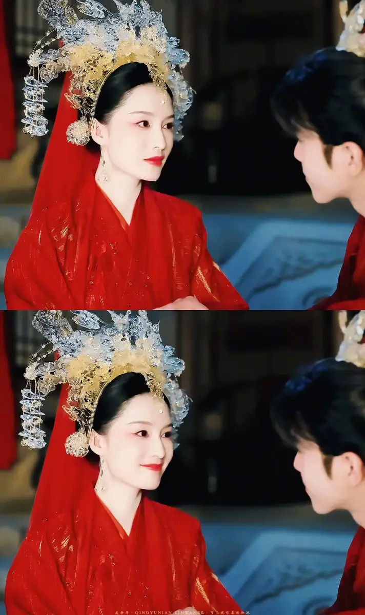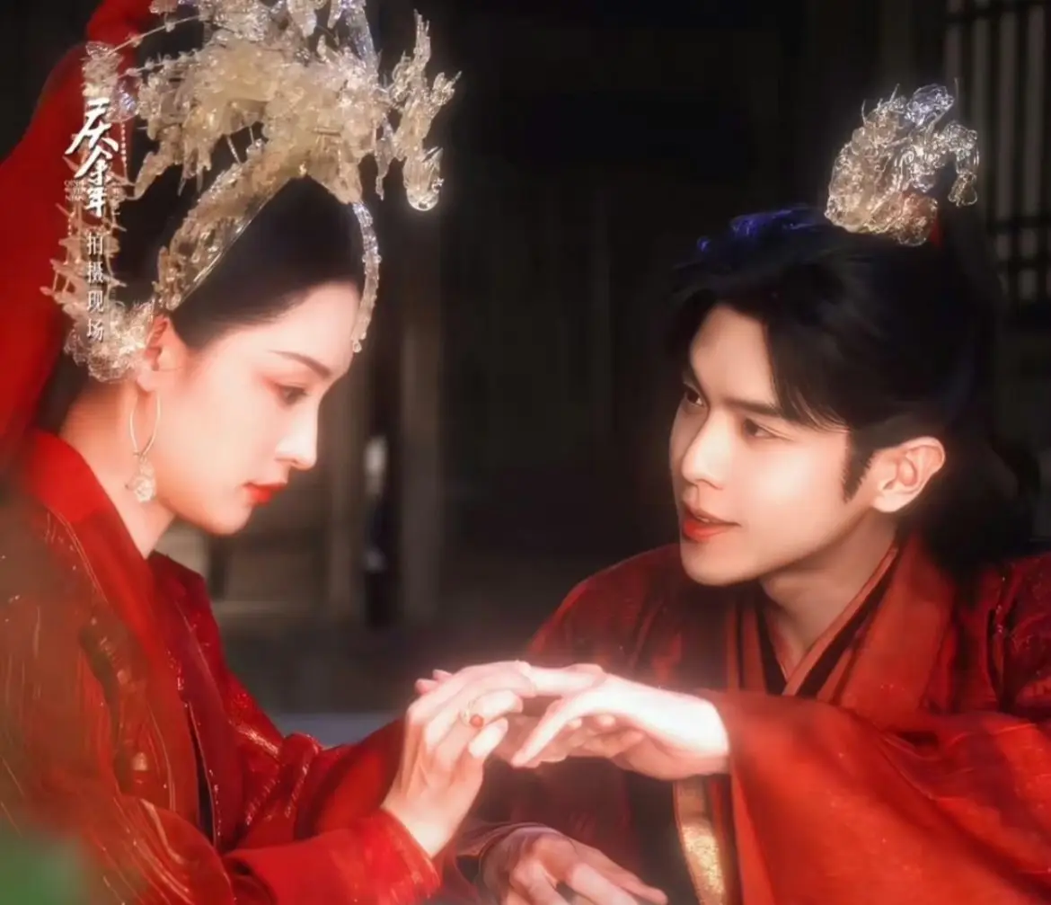張若昀李沁穿紅色古裝婚服 戴3D打印鳳冠貴氣十足