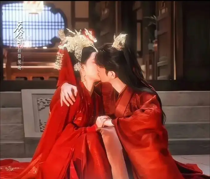 張若昀和李沁兩人甜蜜親吻,幸福般配。