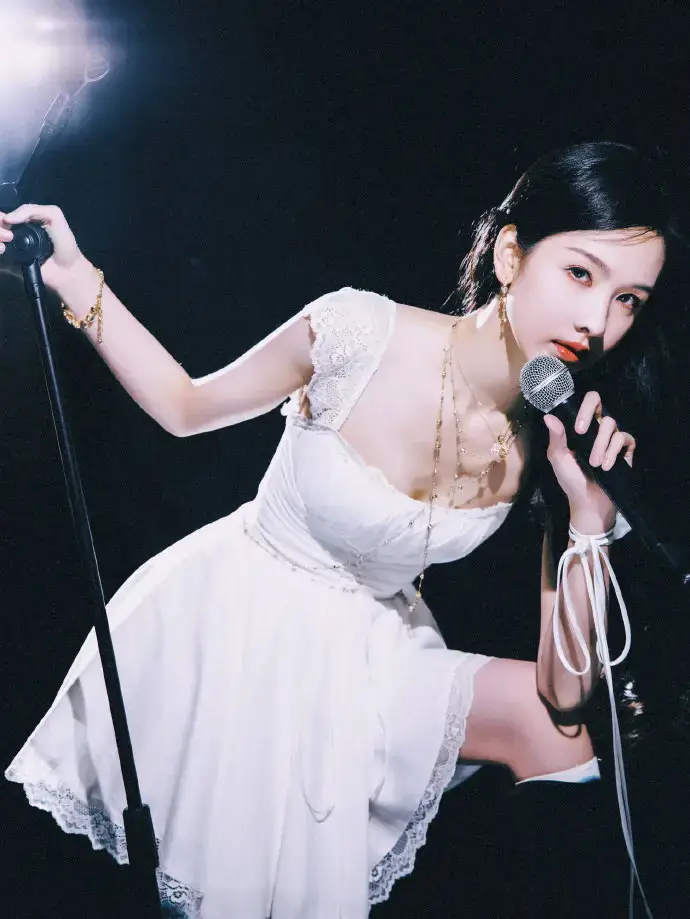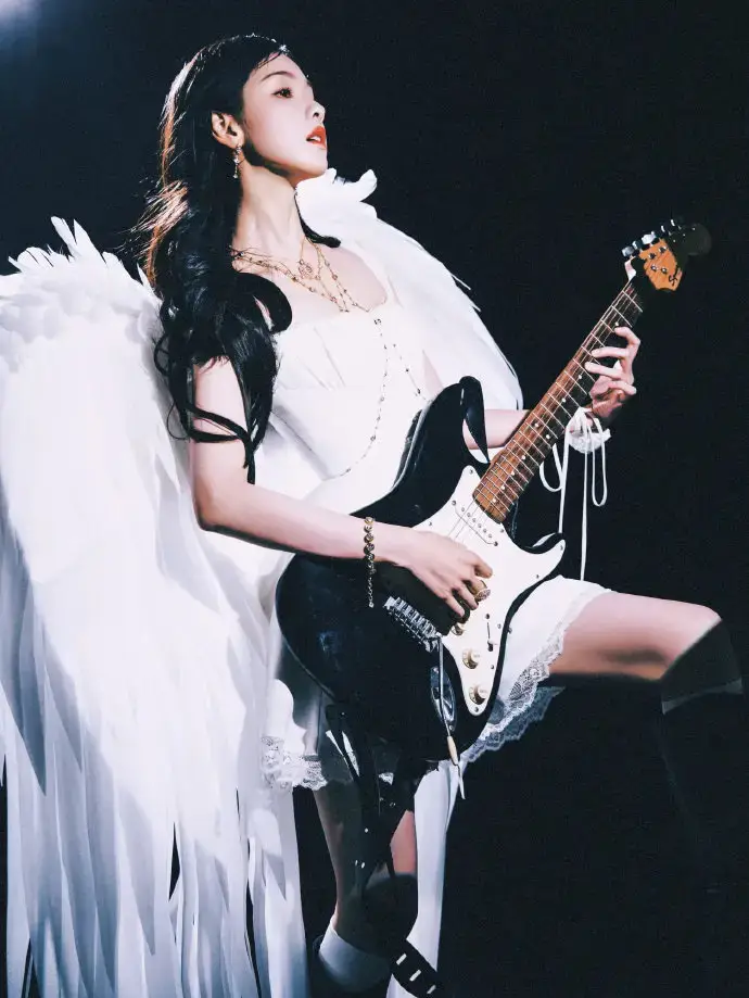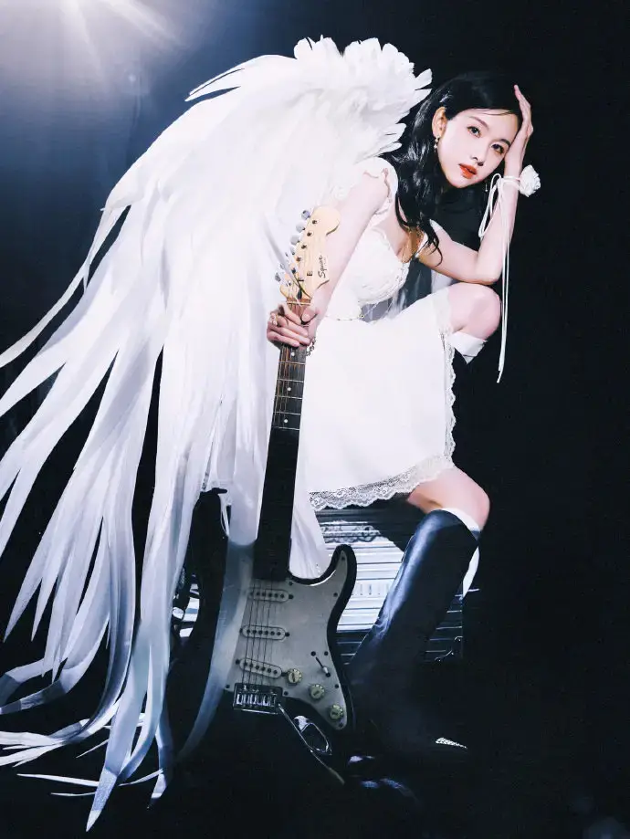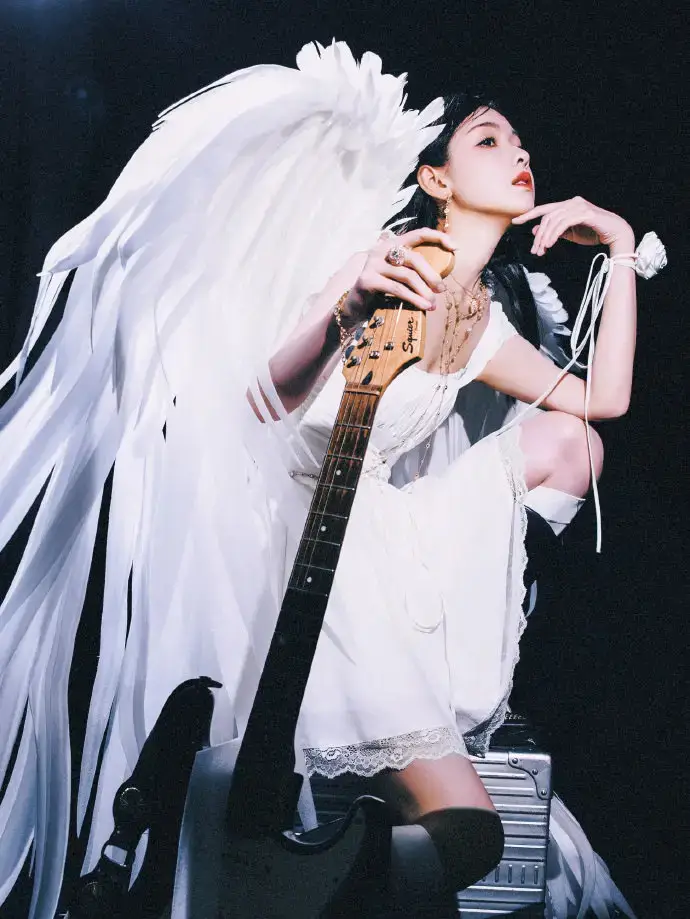 7月5日,一組陳都靈(明星出場(chǎng)費(fèi))朋克天使造型的照片曝光,她身穿白色蕾絲吊帶裙手拿貝斯,化身為朋克天使。