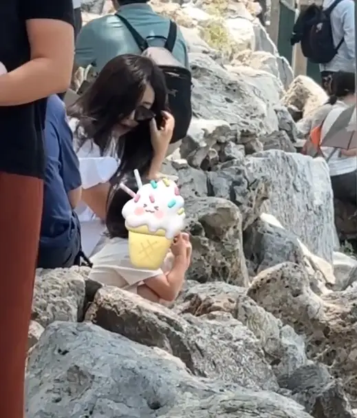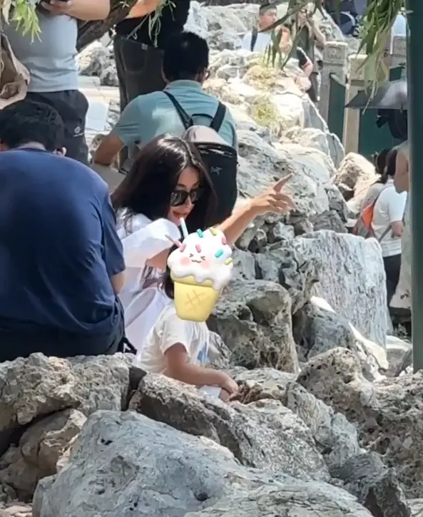 7月7日,有網(wǎng)友在北海公園偶遇了朱珠一家。