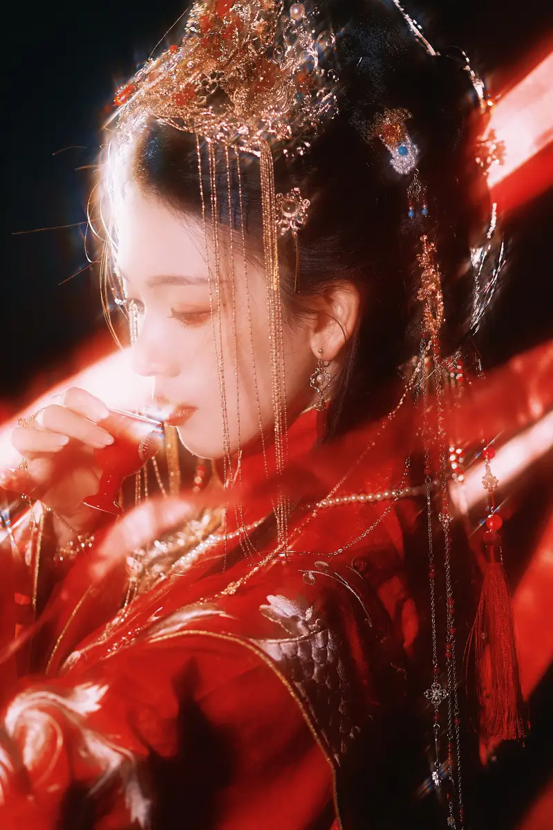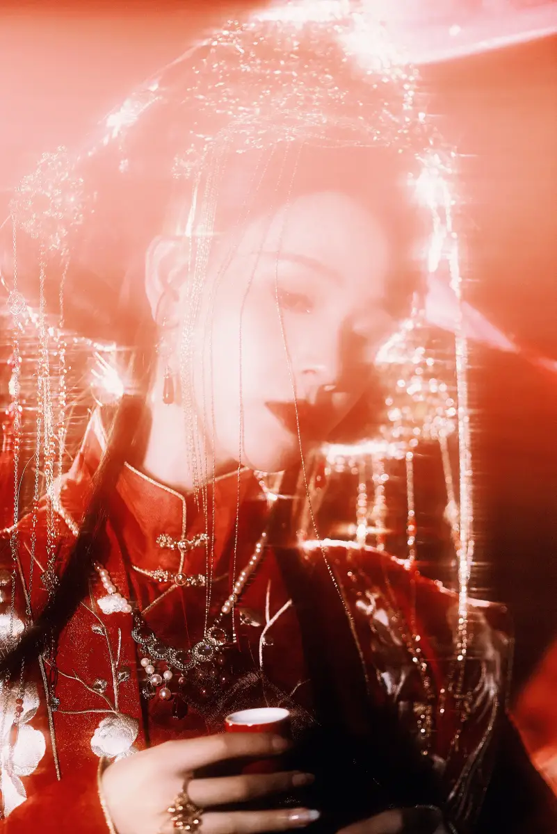 7月8日,陳瑤(明星經(jīng)紀(jì)公司)工作室發(fā)布一套組圖。陳瑤身著傳統(tǒng)古風(fēng)婚服“鳳冠霞披”,氛圍詭譎夢(mèng)幻。