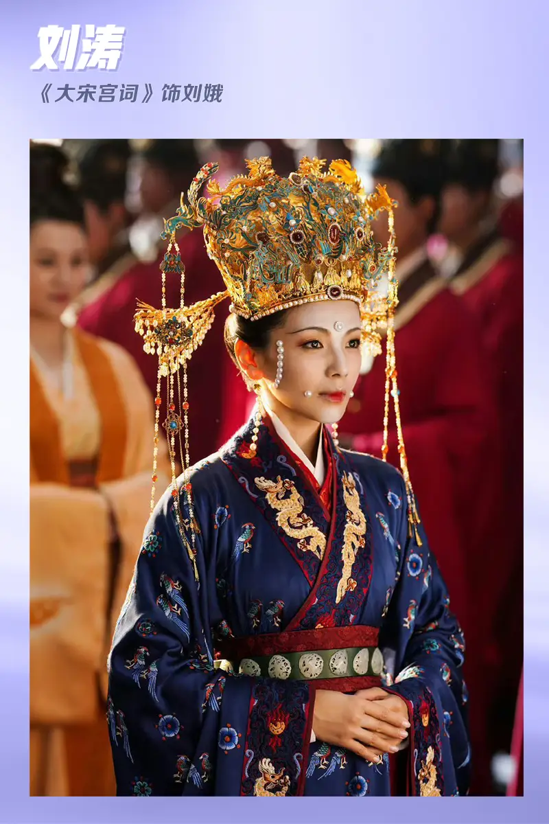 還有另一部宋朝古裝劇《大宋宮詞》,劉濤在劇中飾演劉娥,與《清平樂》中的妝造比較類似,主打一個考究真實。