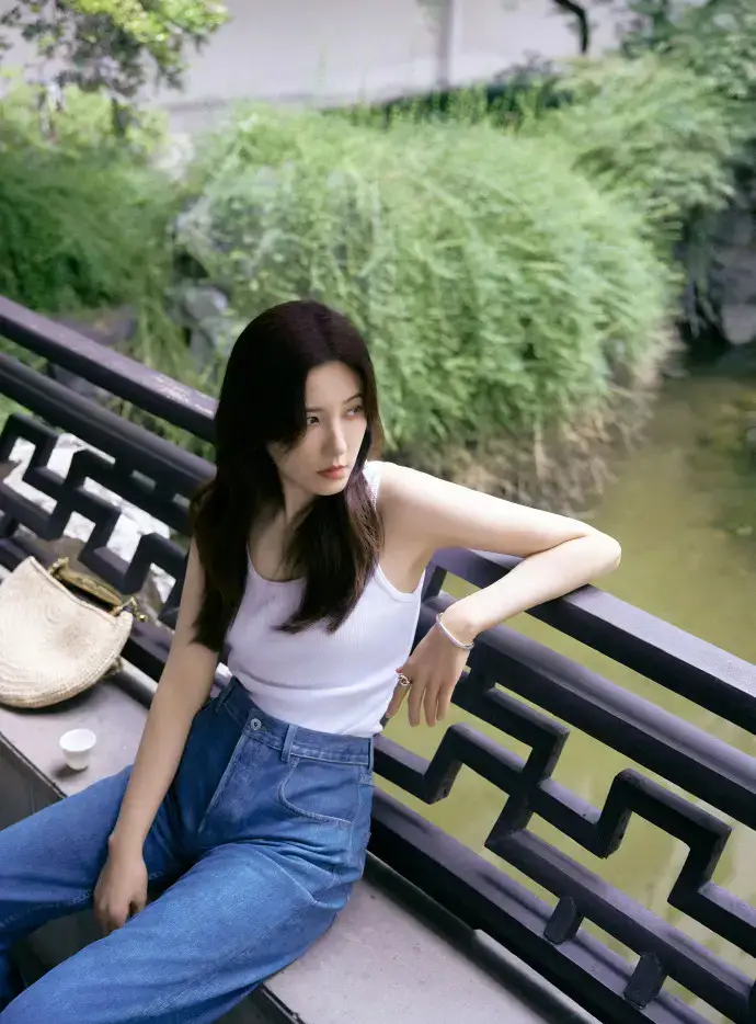 曾黎時尚感十足,和牛仔套裝適配度拉滿。