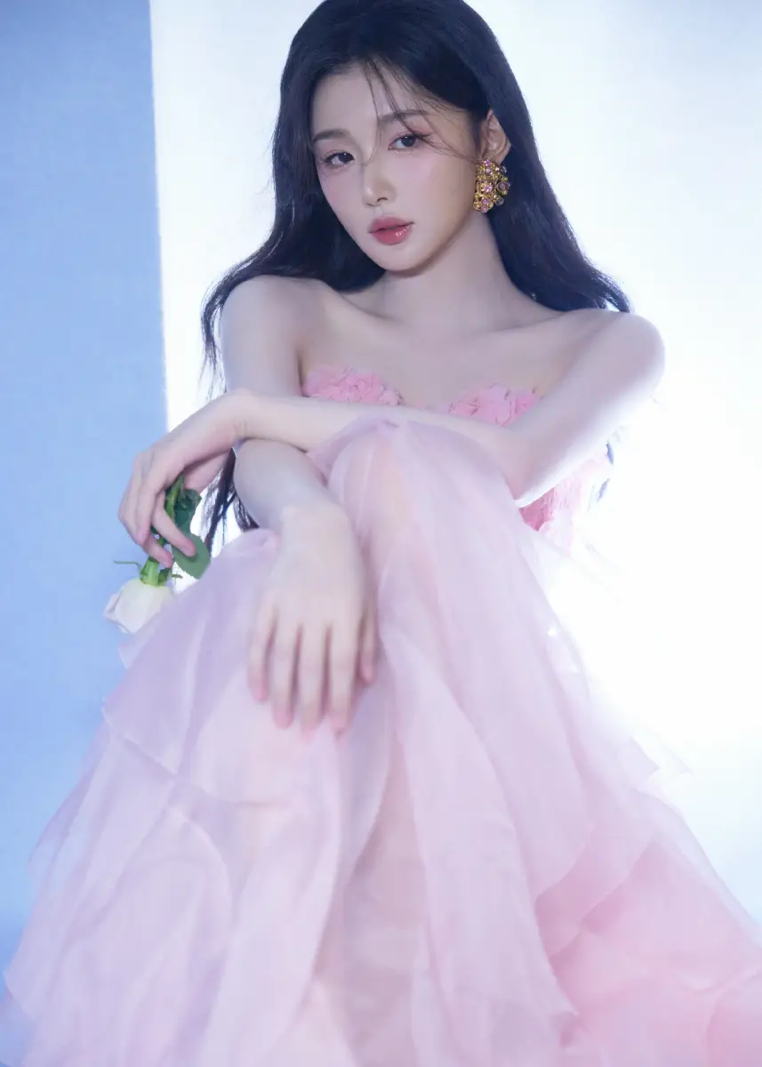 孔雪兒穿粉色抹胸裙仙氣十足 美腿若隱若現(xiàn)好撩人
