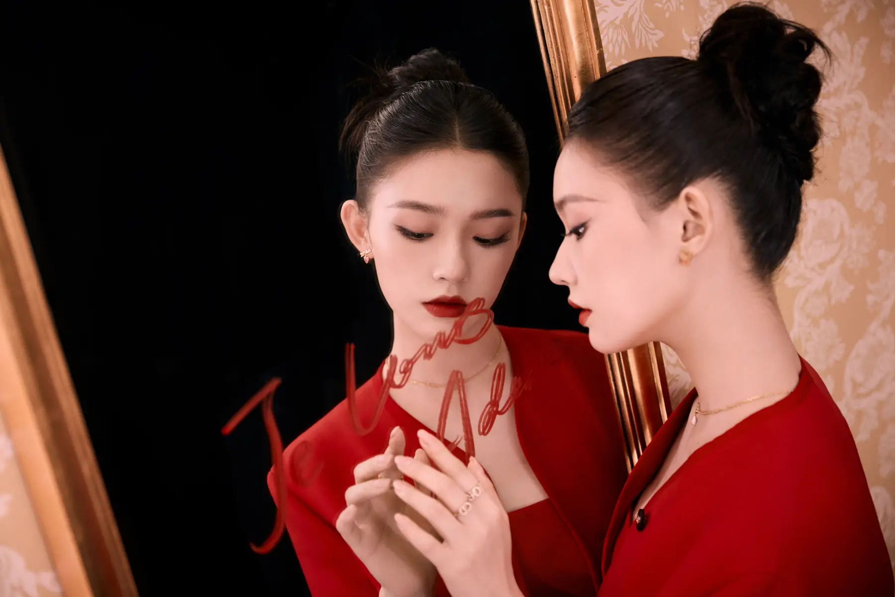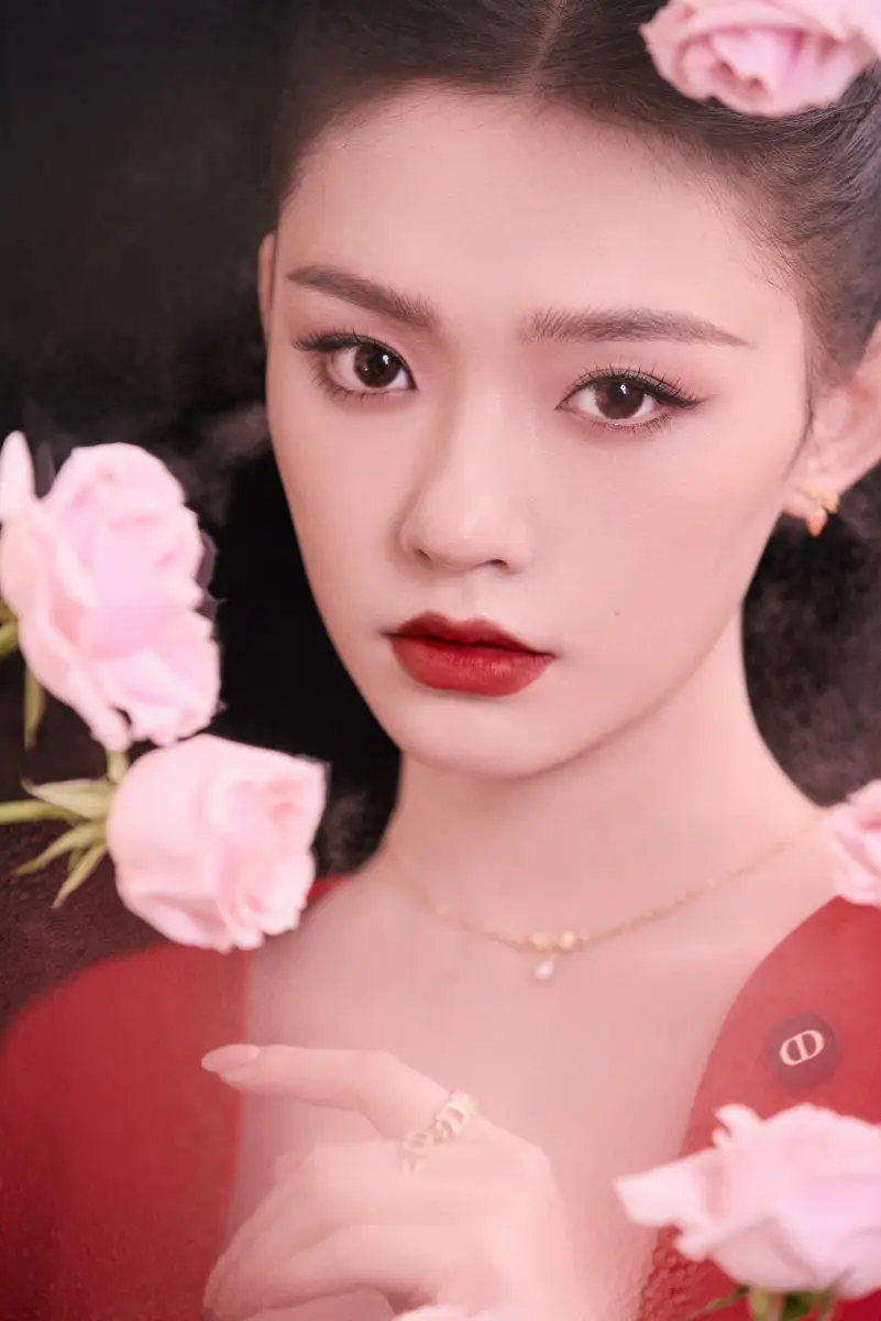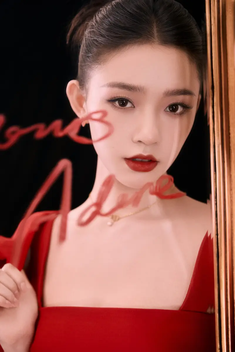 林允一抹紅唇性感撩人 目光含情如花綻放