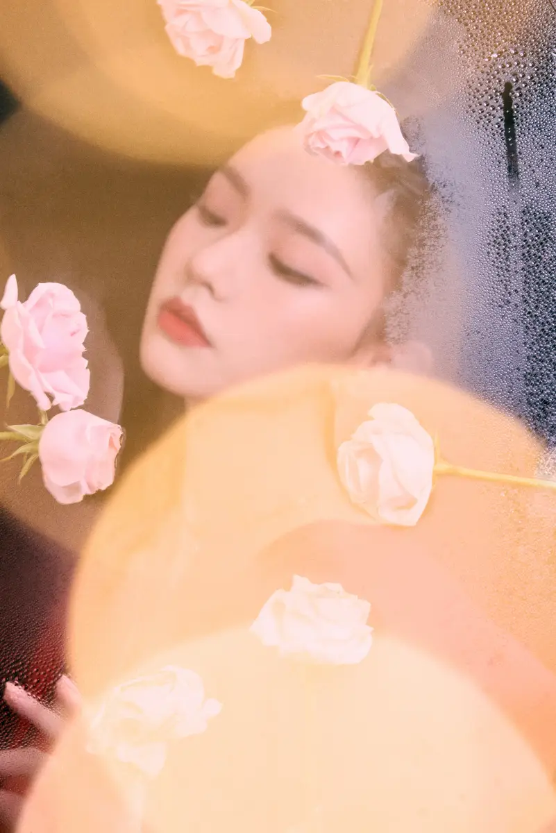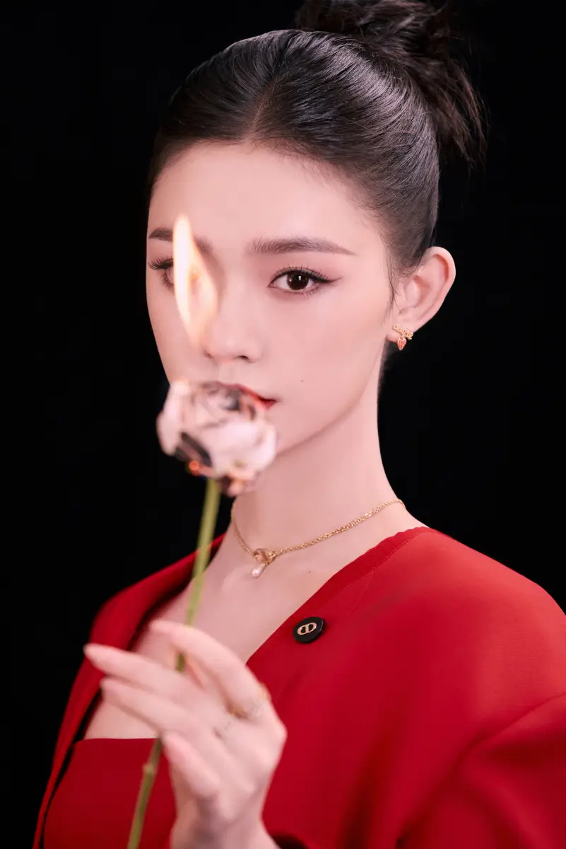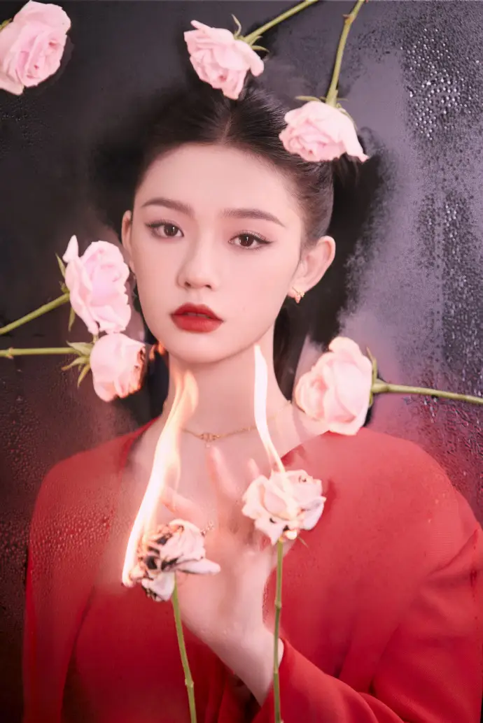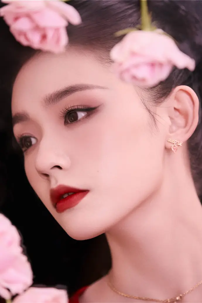 林允一抹紅唇性感撩人 目光含情如花綻放