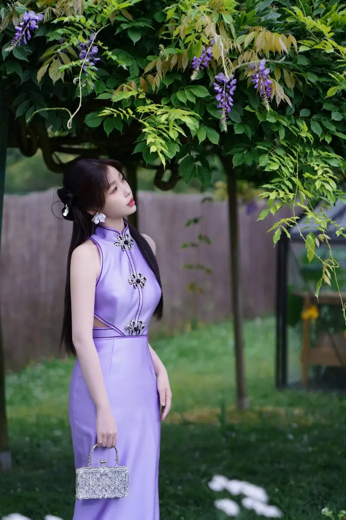 7月15日,虞書欣(明星經(jīng)紀(jì)公司)一組紫色旗袍造型寫真釋出,手提拎包身材婀娜多姿。