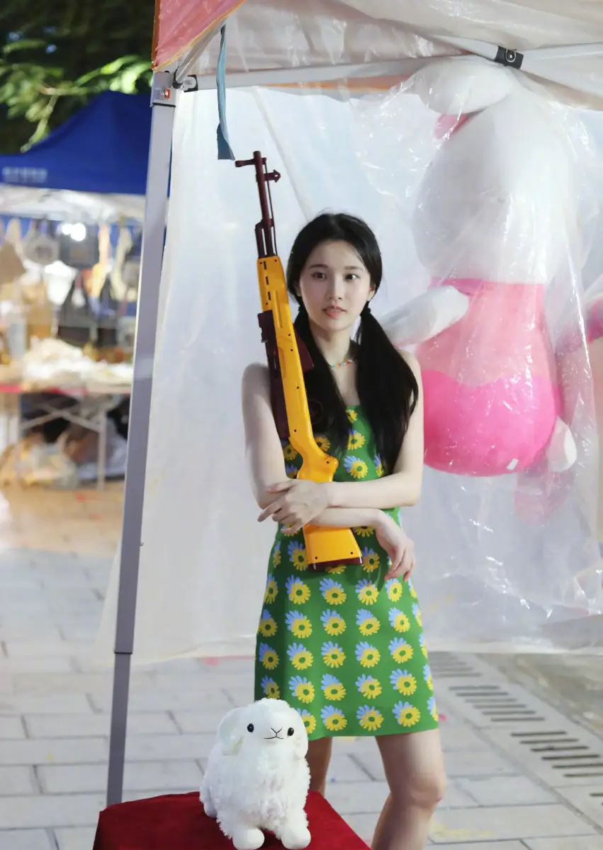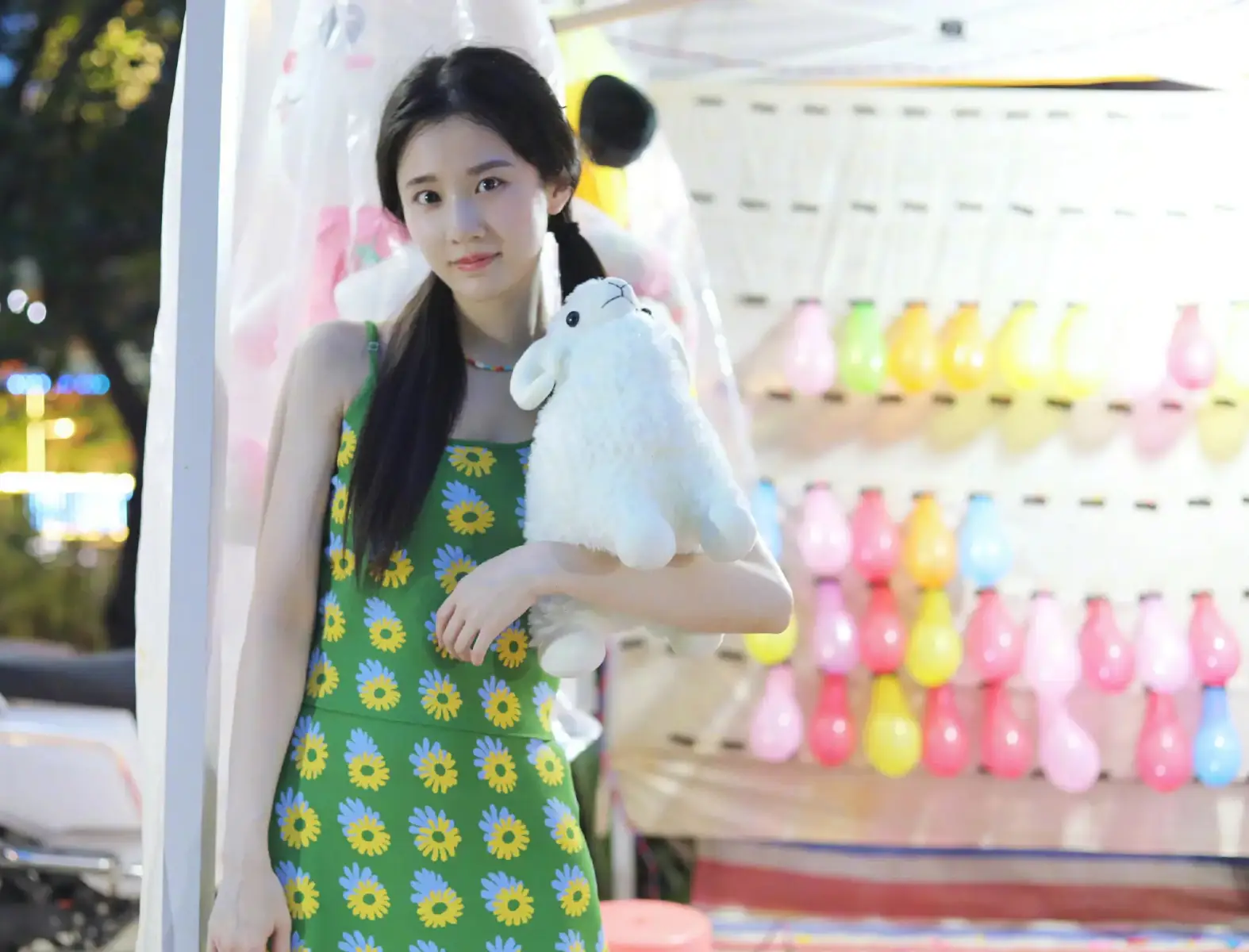 7月17日,張慧雯(明星經(jīng)紀(jì)公司)曬出一組夜市玩樂的照片。她扎著可愛的雙馬尾,身穿綠色印花裙,俏皮活潑。
