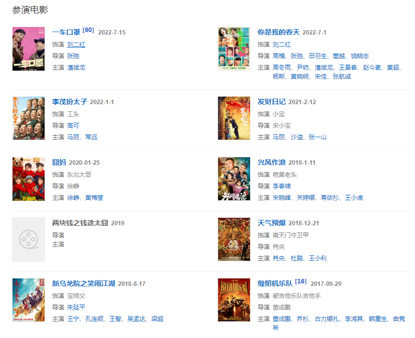 20221月,參加2022年北京廣播電視臺(tái)春節(jié)聯(lián)歡晚會(huì)錄制。  21日,參加2022年北京廣播電視臺(tái)春節(jié)聯(lián)歡晚會(huì),參演小品《這世界那么多的人》;130日,參加《2022年遼寧衛(wèi)視春節(jié)聯(lián)歡晚會(huì)》;21日,參加《2022年?yáng)|方衛(wèi)視春節(jié)聯(lián)歡晚會(huì)》;同年,主演抗疫電影《你是我的春天》。